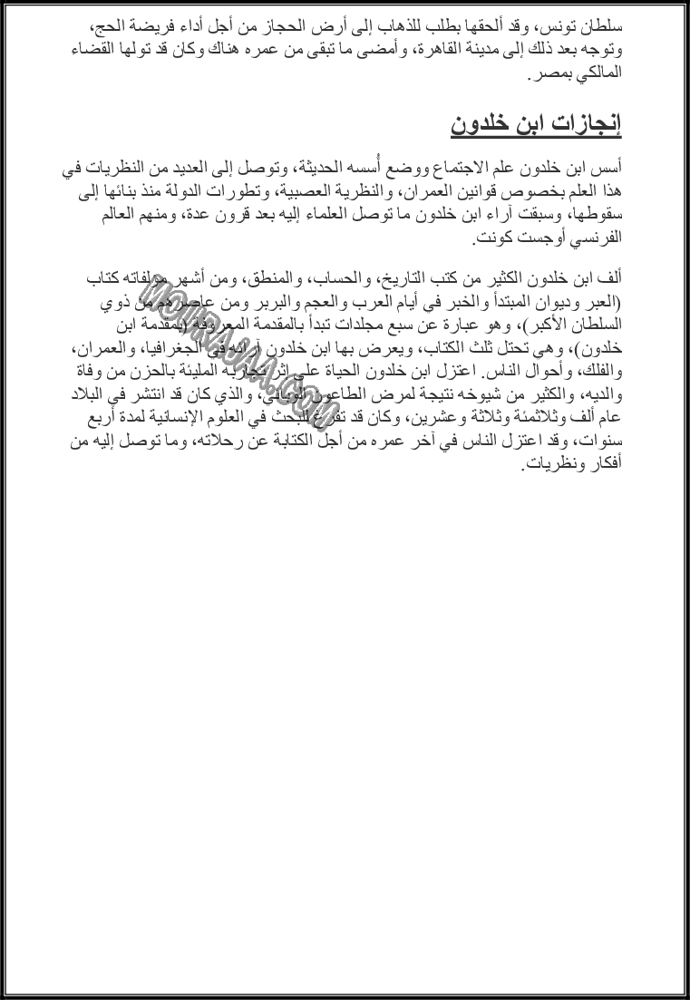 ابن خلدون هو عنوان لمحور درس مادة الايقاظ العلمي لـسنة سادسة ابتدائي