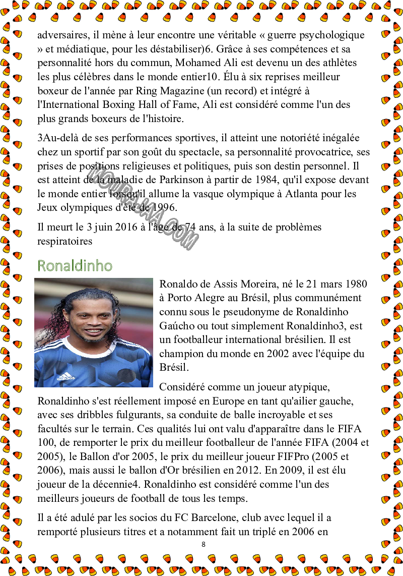 recherche scolaire sur personnages sportifs pour eleves de sixieme annee primaire .