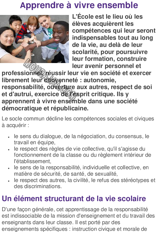la recherche scolaire de Apprendre à vivre ensemble pour faciliter et simplifier la leçon Apprendre à vivre ensemble pour que l eleve de sixieme annee primaire avoir de la compréhension profonde et la réalisation des sujets de la leçon