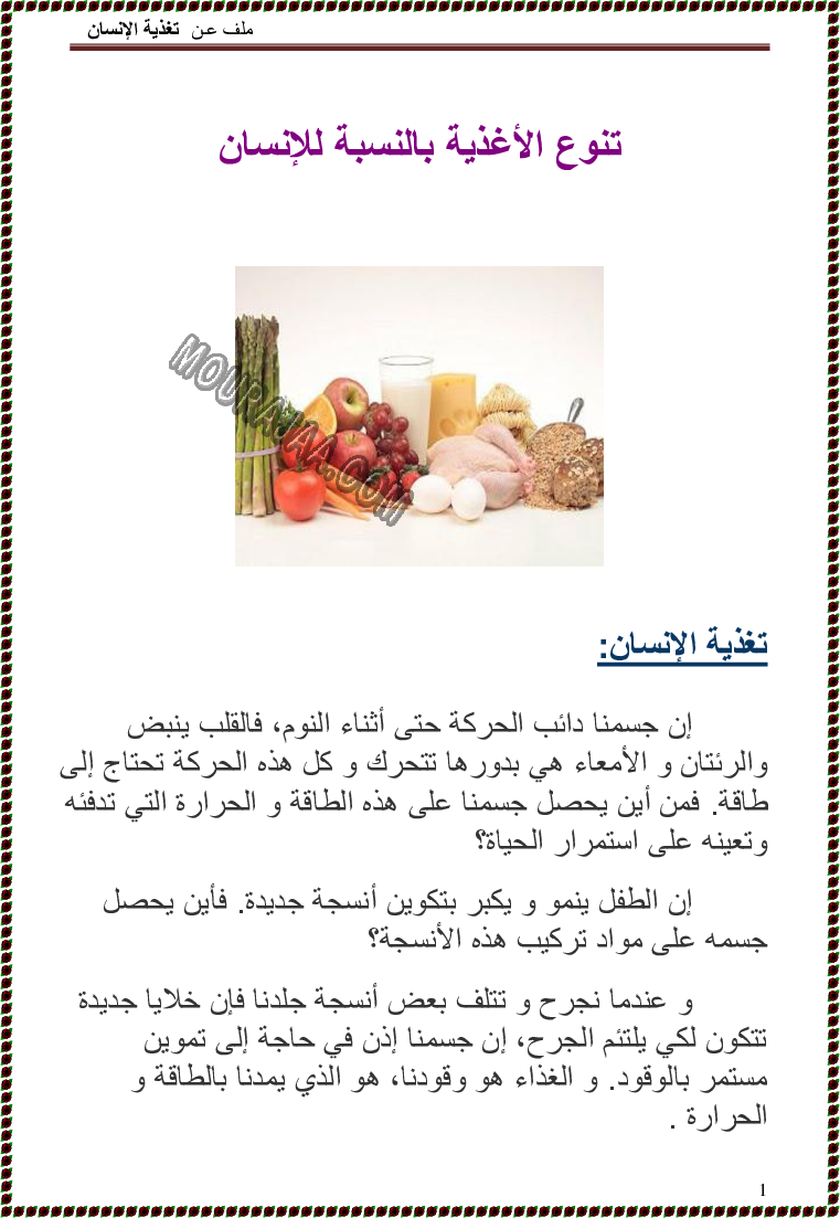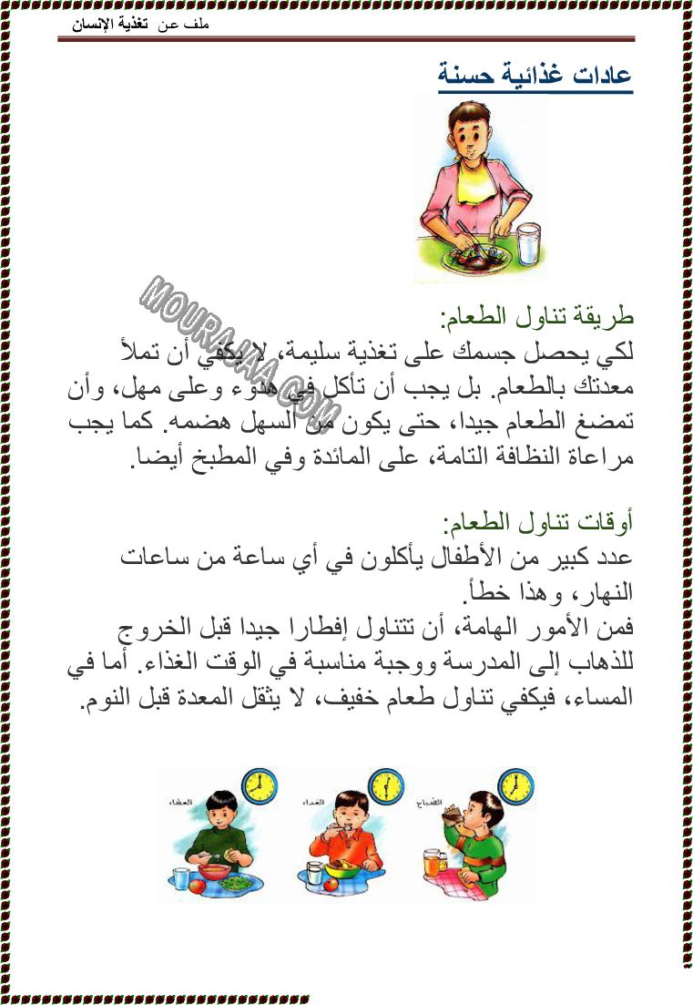 و يتمثل البحث تعريف التغذية-عند-الإنسان و معلومات حوله مع صور لتبسيط درس التغذية-عند-الإنسان في مادة االايقاظ العلمي لسنة ثالثة ابتدائي