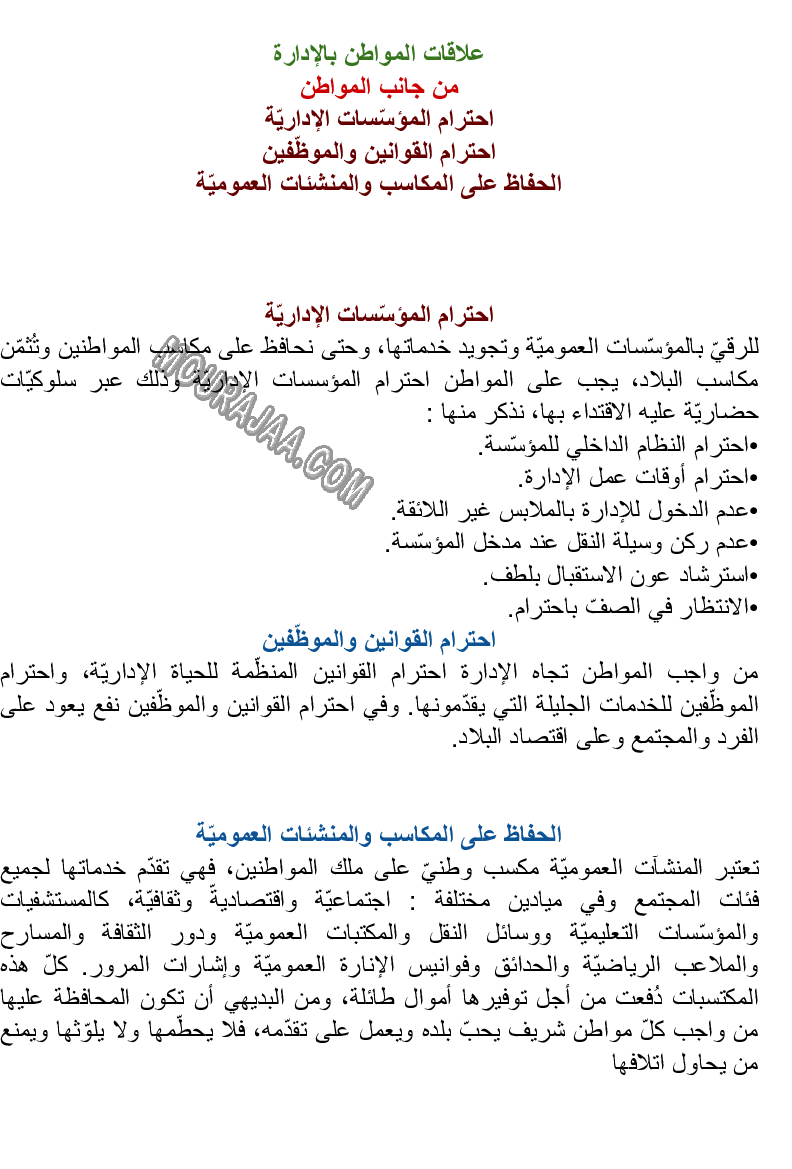 الادارة هو عنوان لمحور درس مادة تربية مدنيةلسنة سادسة ابتدائي