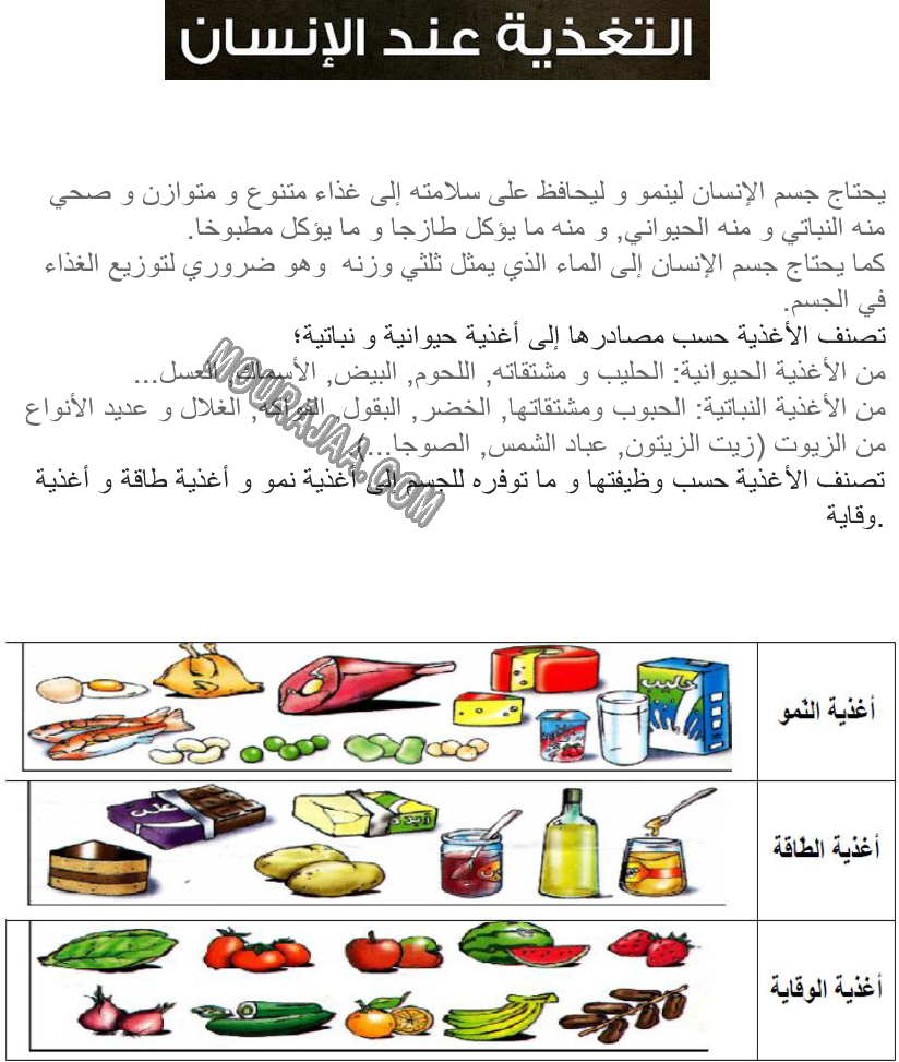 و يتمثل الدرس في تعريف و تلخيص التغذية عند الانسان و معلومات حوله مع صور لتبسيط درس التغذية عند الانسان في مادة ايقاظ علميلسنة سادسة ابتدائي