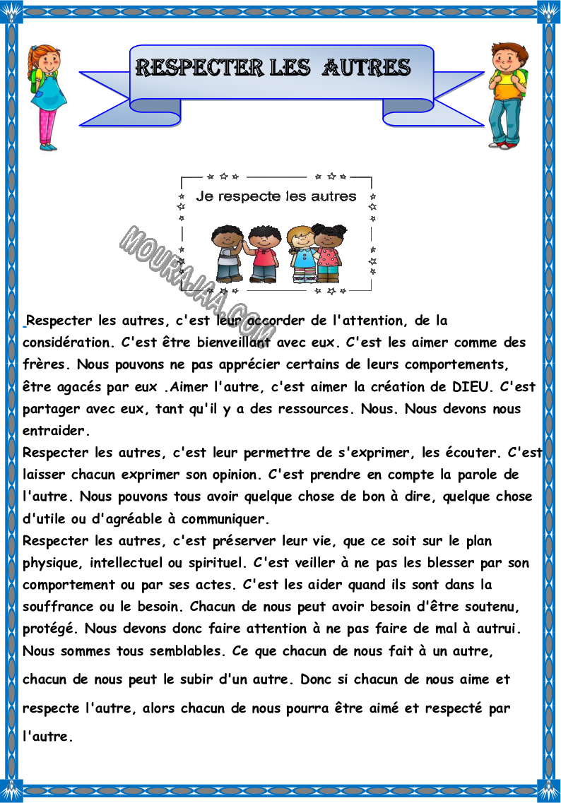 و يتمثل البحث تعريف respecter-les-autres و معلومات حوله مع صور لتبسيط درس respecter-les-autres في مادة االايقاظ العلمي لسنة سادسة ابتدائي