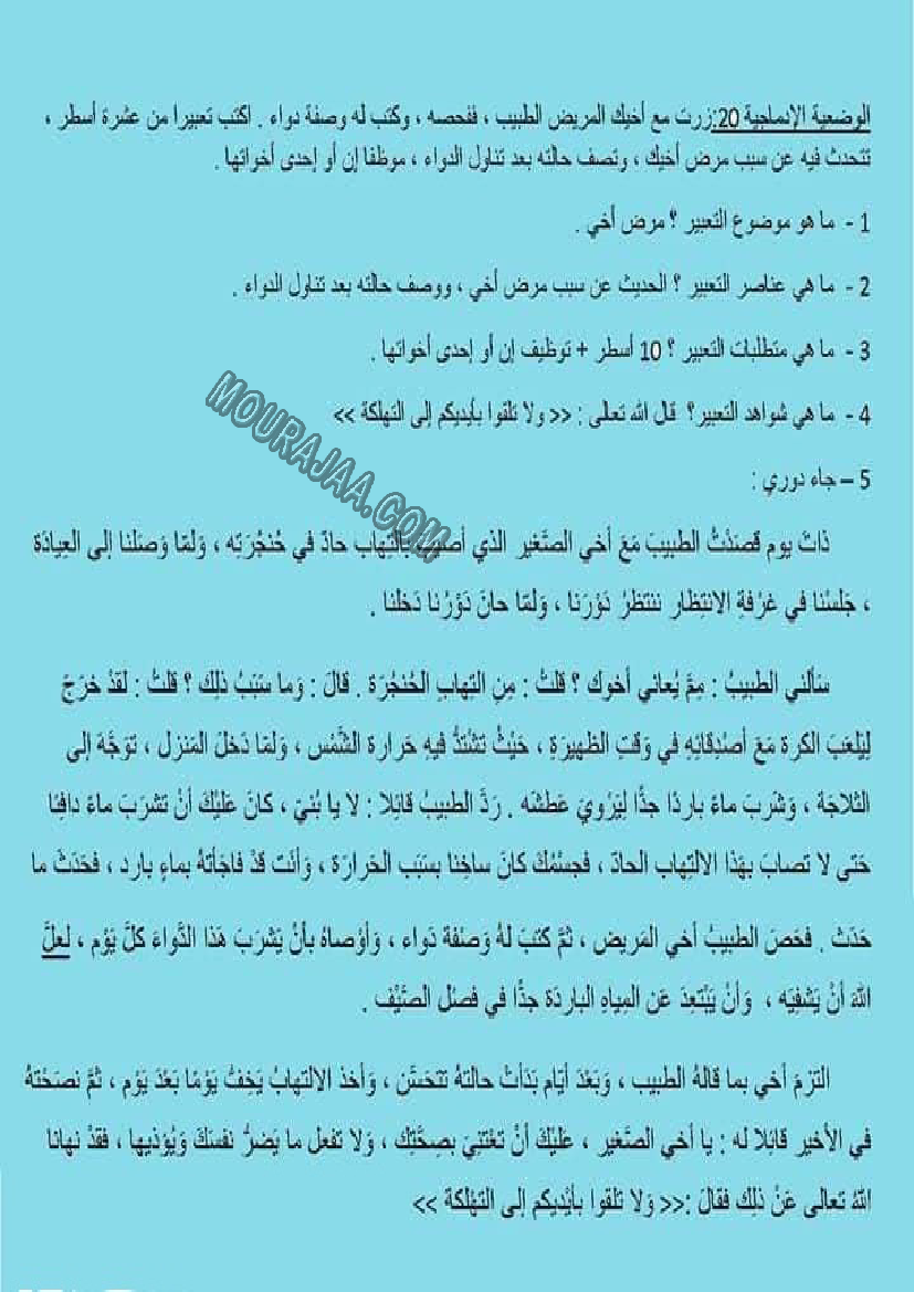 مرض أخي هو عنوان لمحور درس مادة الايقاظ العلمي لـسنة خامسة ابتدائي