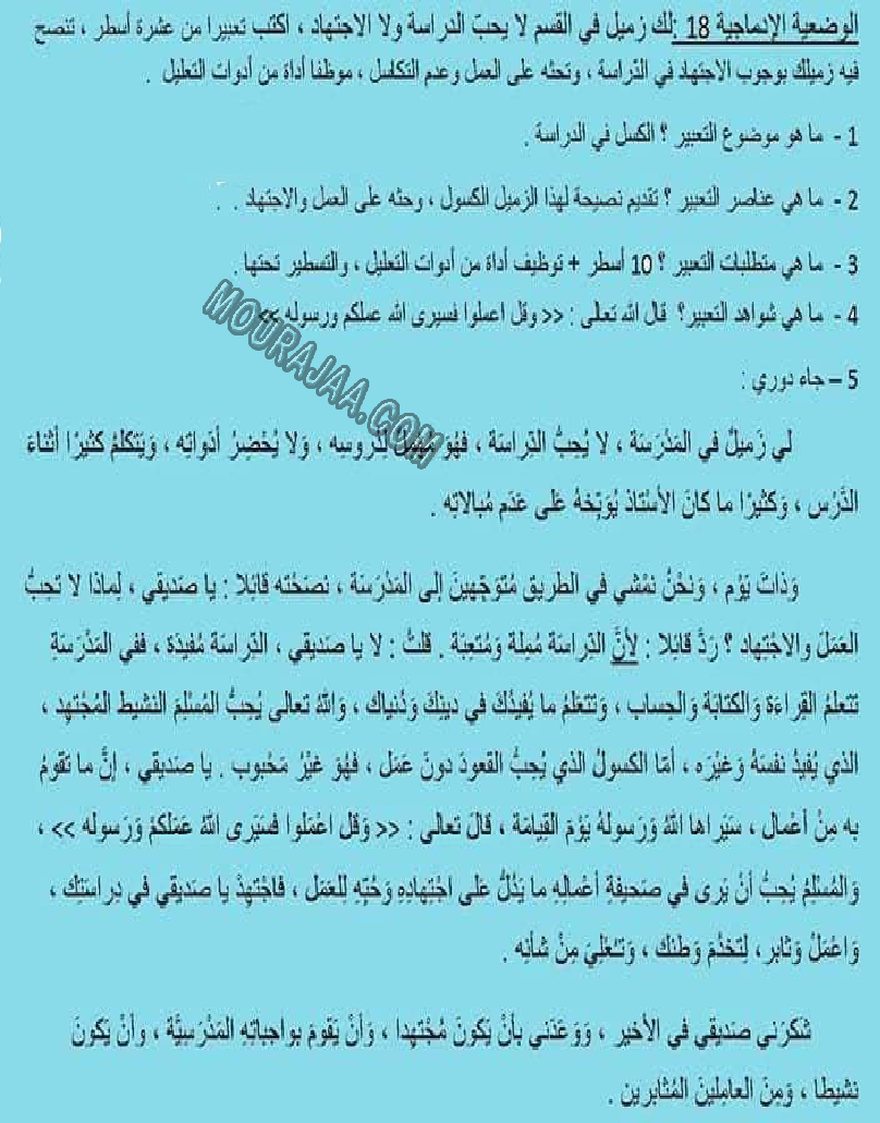 الكسل في الدراسة هو عنوان لمحور درس مادة الايقاظ العلمي لـسنة رابعة ابتدائي