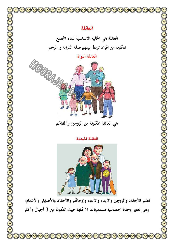مفهوم العائلة و وظائفها هو عنوان لمحور درس مادة تربية مدنيةلسنة خامسة ابتدائي