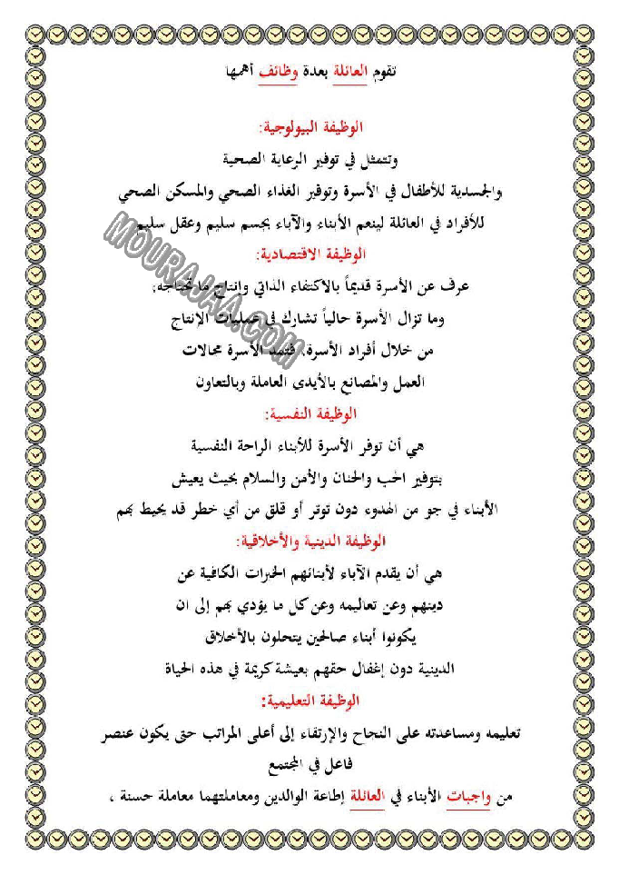 يتحدث الدرس على مفهوم العائلة و وظائفها لمساعدة تلميذ سنة خامسة ابتدائي في مراجعة دروسه و امتحاناته و ذلك عبر تحميله في صيغة ملف او مشاهدته في صيغة صور