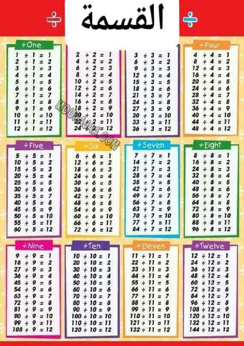 القسمة هو عنوان لمحور درس مادة رياضياتلسنة رابعة ابتدائي