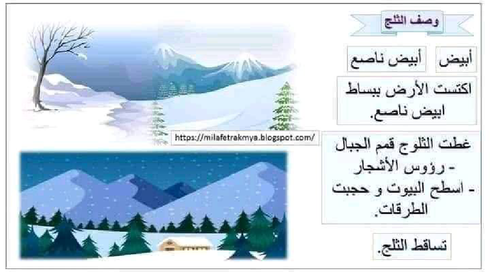 وصف الثلج هو عنوان لمحور درس مادة الايقاظ العلمي لـسنة سادسة ابتدائي