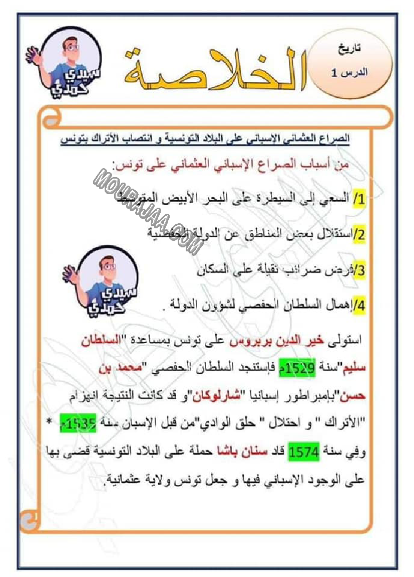يتحدث الدرس على الصراع العثماني الاسباني لمساعدة تلميذ سنة خامسة ابتدائي في مراجعة دروسه و امتحاناته و ذلك عبر تحميله في صيغة ملف او مشاهدته في صيغة صور