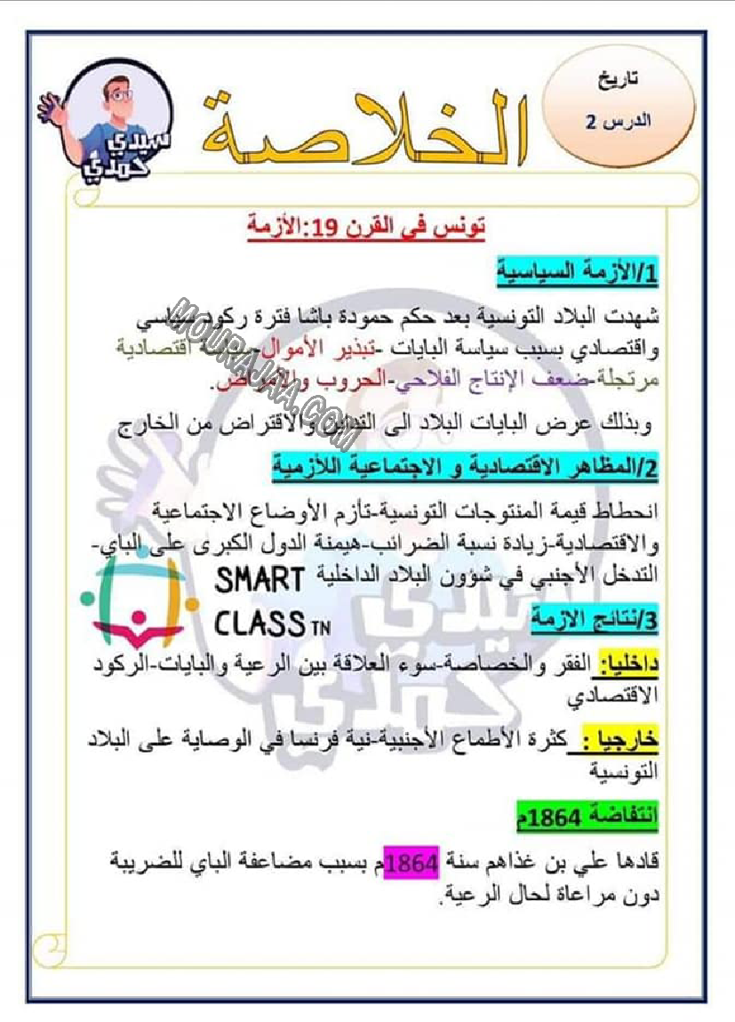 و يتمثل الدرس في تعريف و تلخيص تونس في القرن 19 و معلومات حوله مع صور لتبسيط درس تونس في القرن 19 في مادة تاريخلسنة خامسة ابتدائي