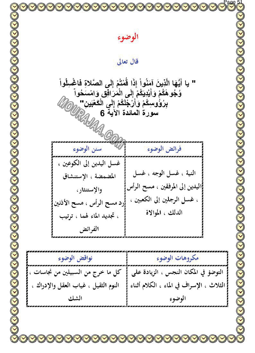 درس حول الوضوء - الصلاة - الاخلاق في مادة تربية اسلامية لتلاميذ سنة خامسة ابتدائي