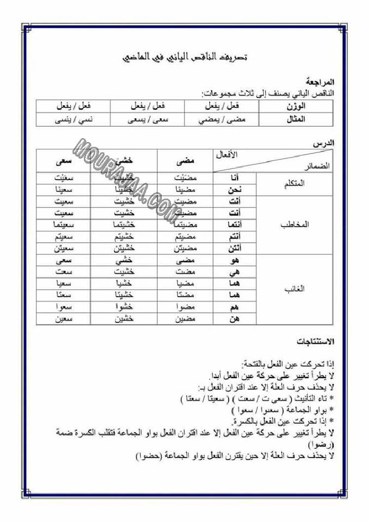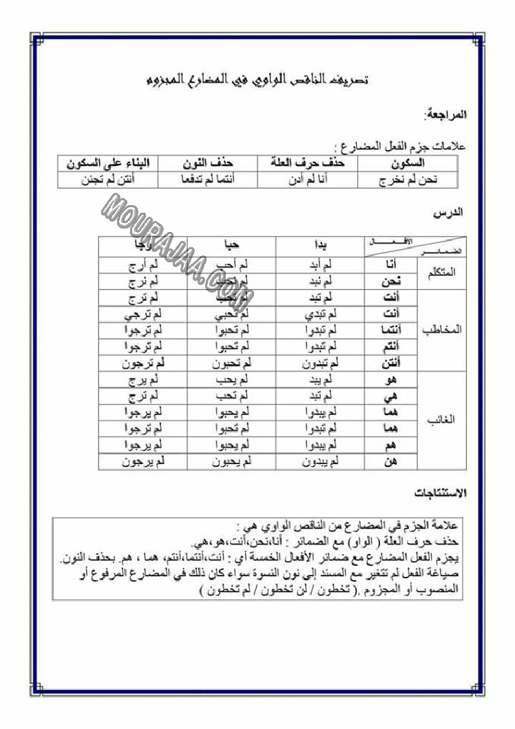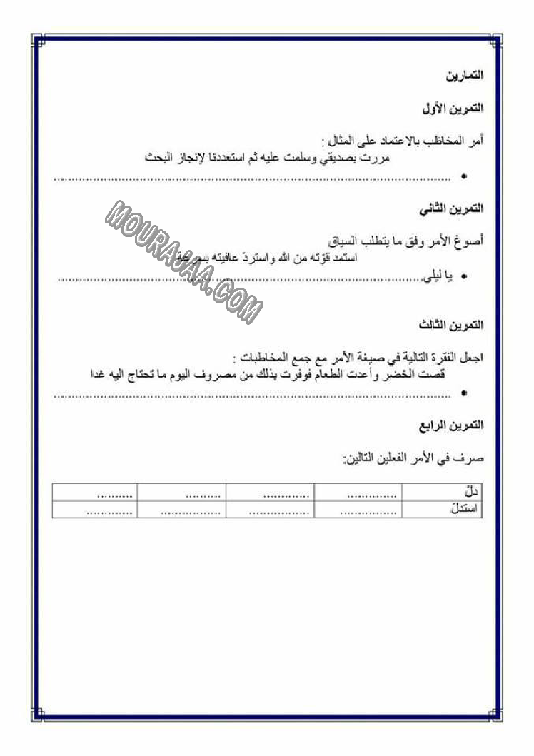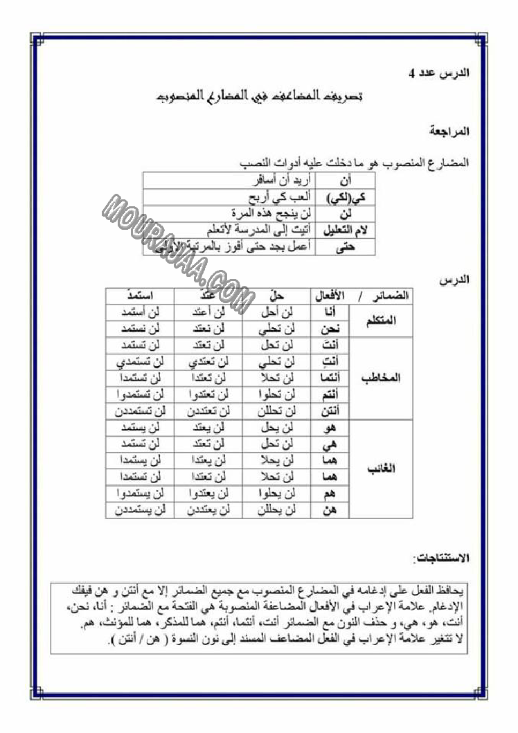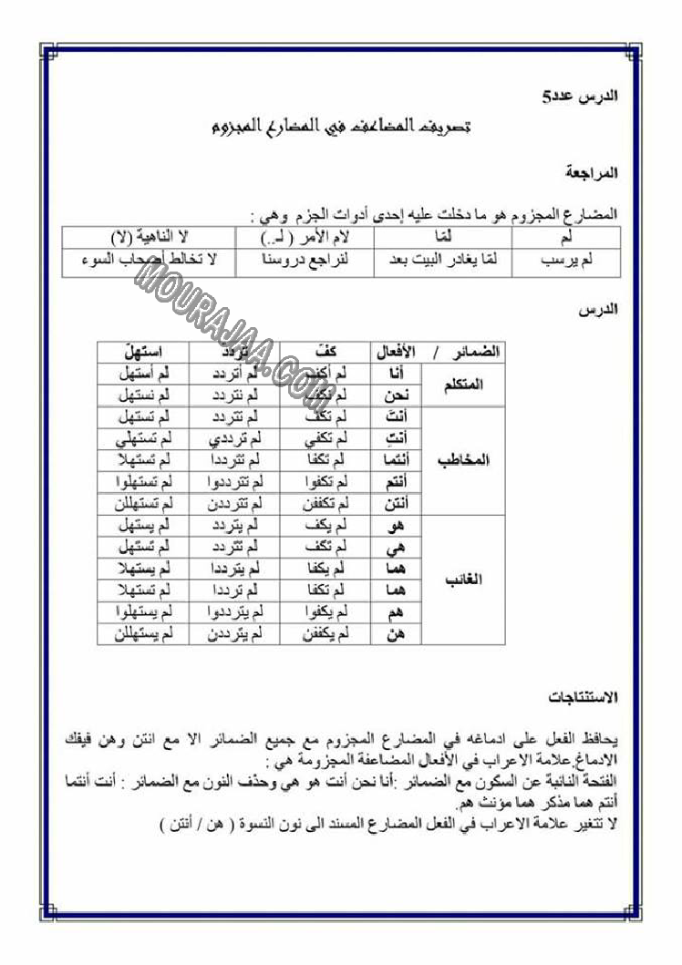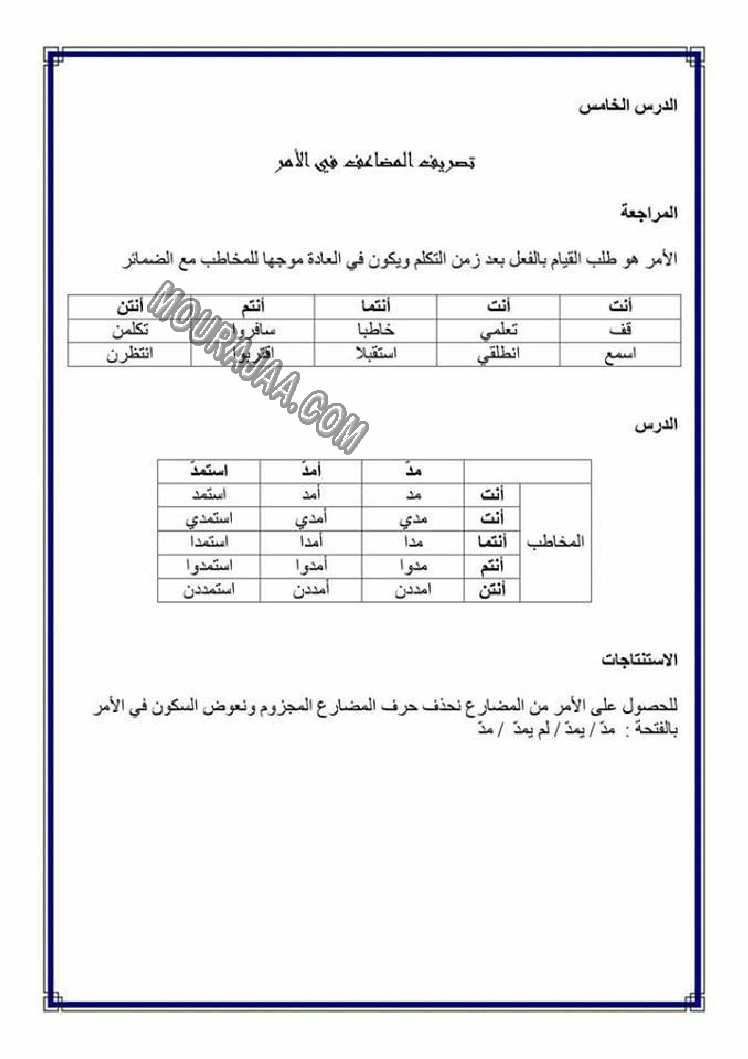 تصريف المضاعف في الامر هو عنوان لمحور درس مادة لغةلسنة خامسة ابتدائي