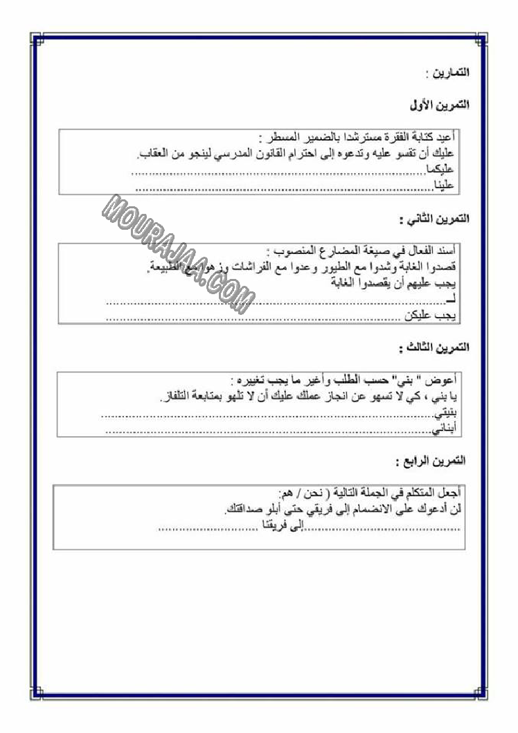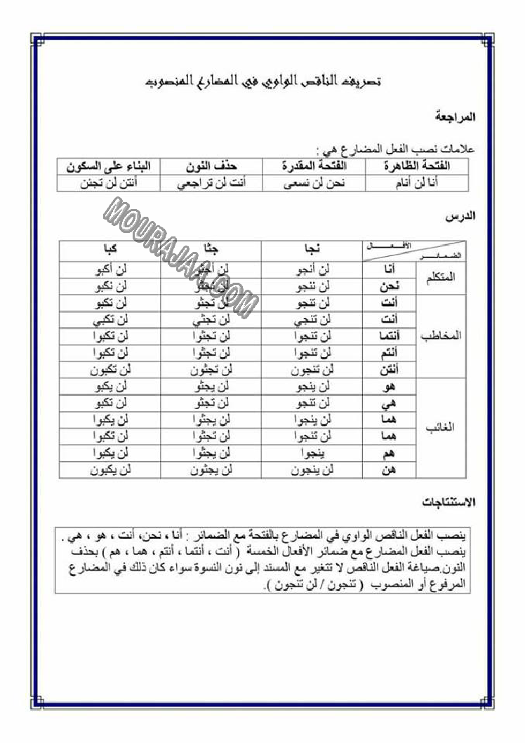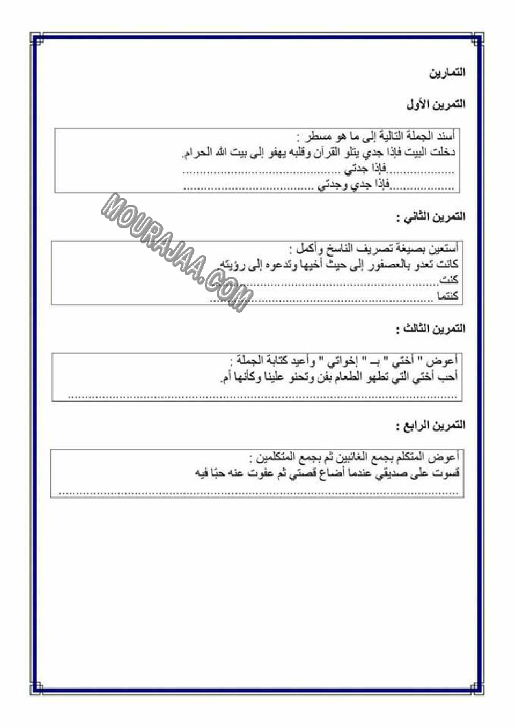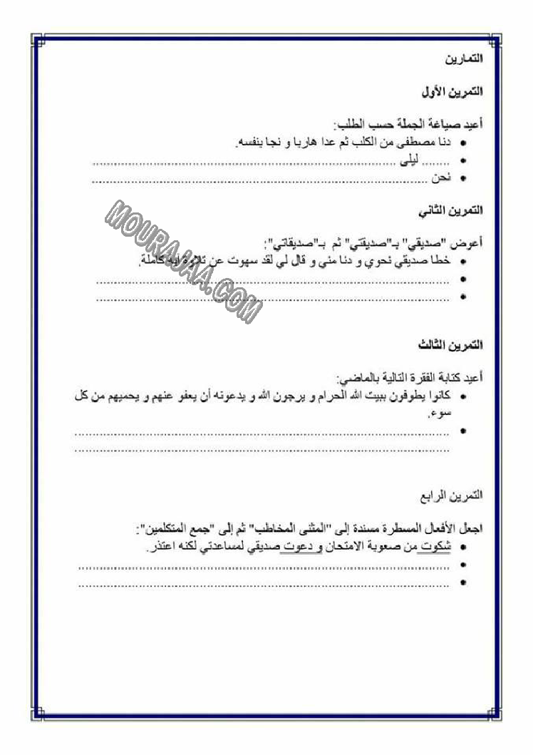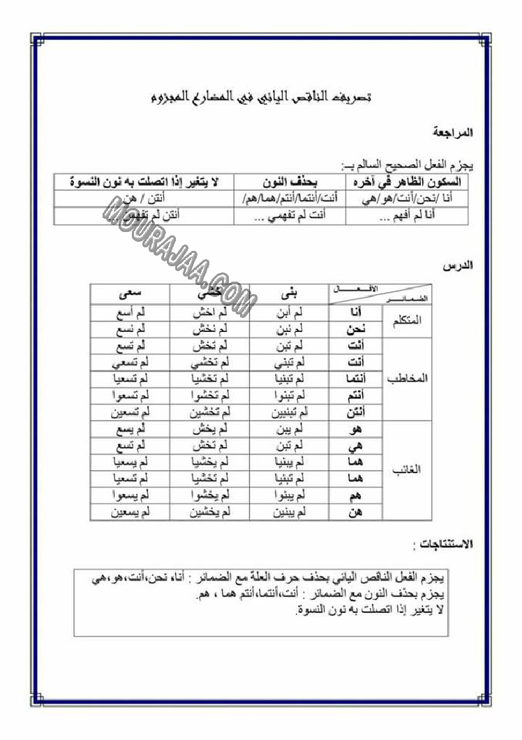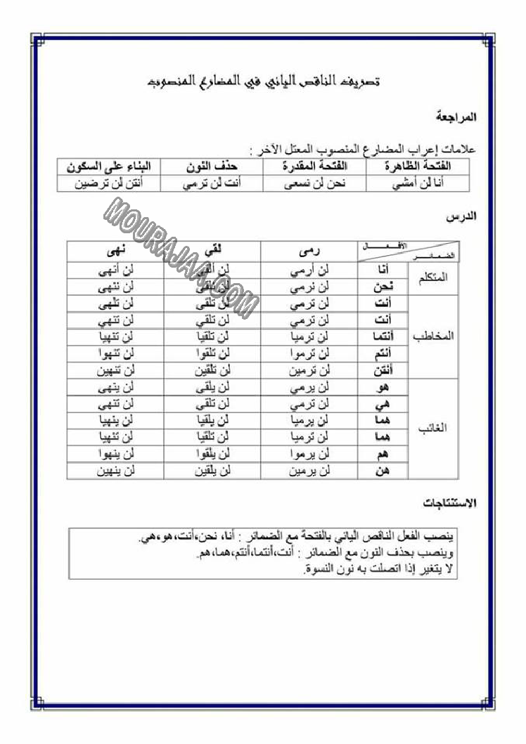 تصريف المضاعف في الامر هو عنوان لمحور درس مادة لغةلسنة خامسة ابتدائي