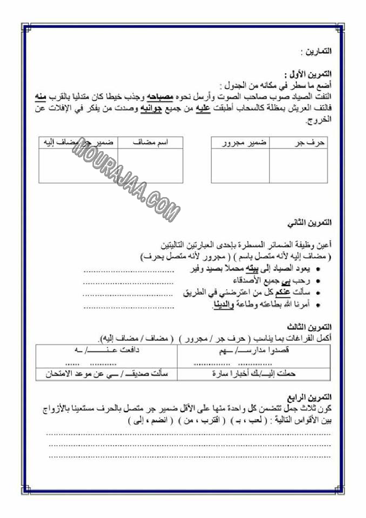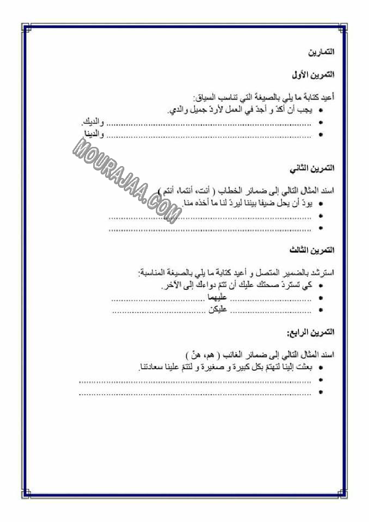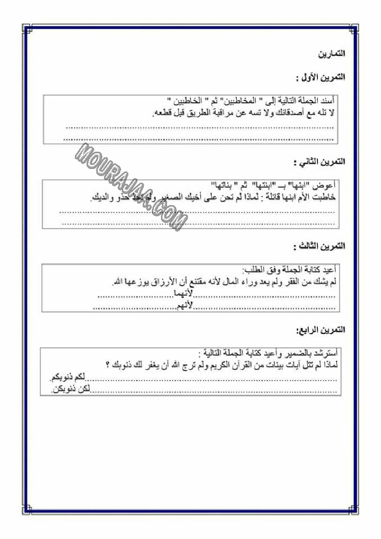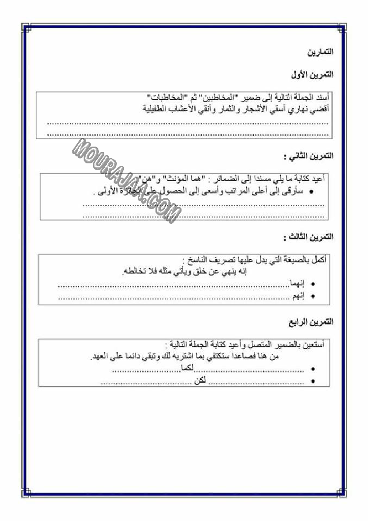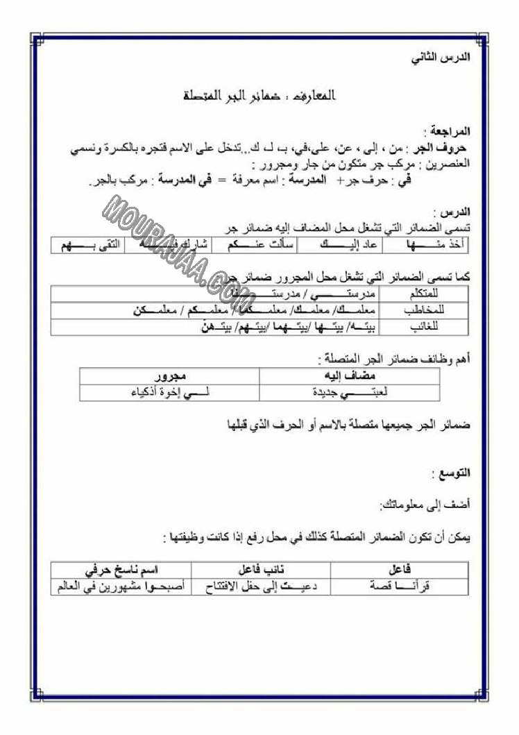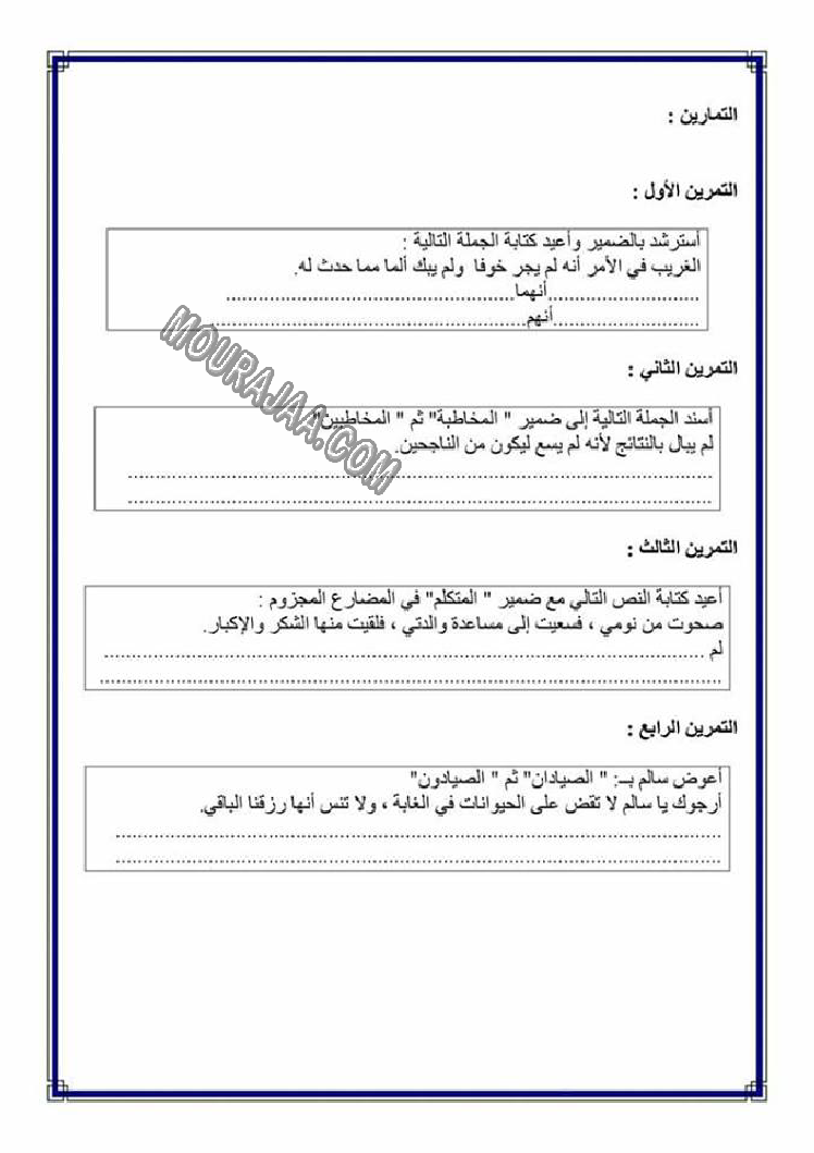 تصريف المضاعف في الامر هو عنوان لمحور درس مادة لغةلسنة خامسة ابتدائي