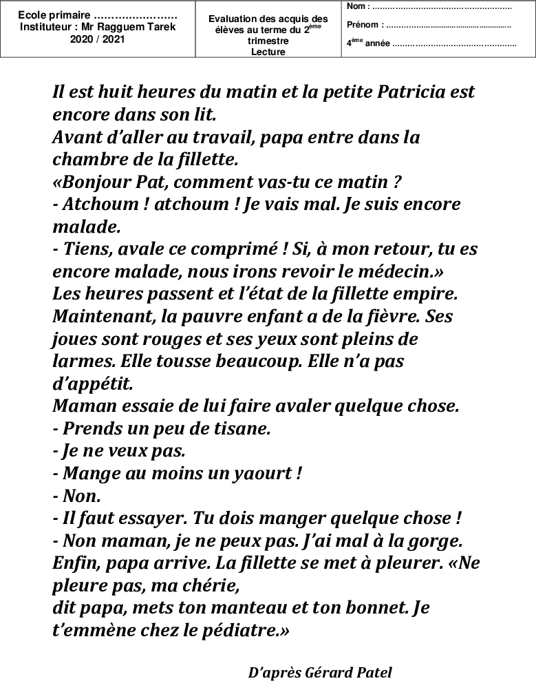 exam-lecture 2eme trimestre