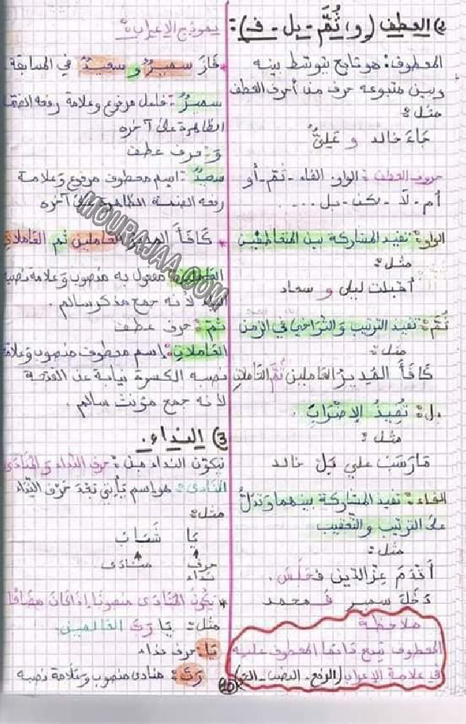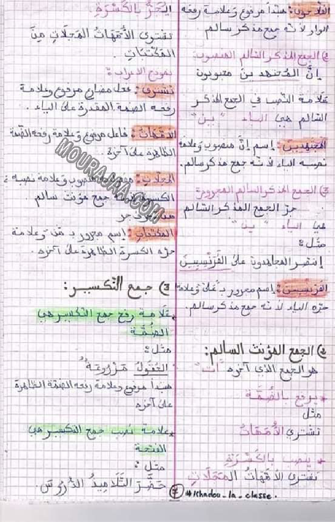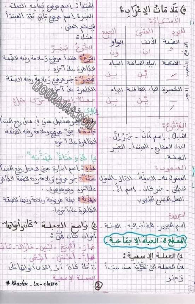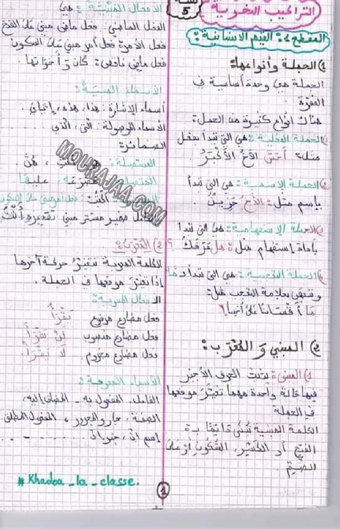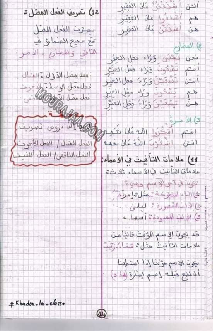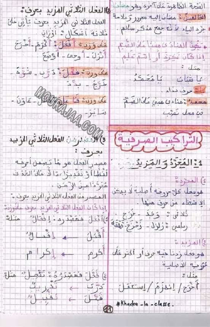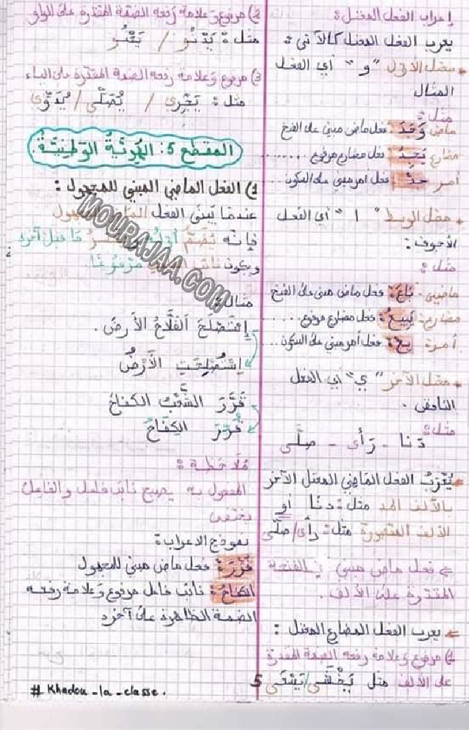 الاعراب - التصريف هو عنوان لمحور درس مادة لغةلسنة خامسة ابتدائي