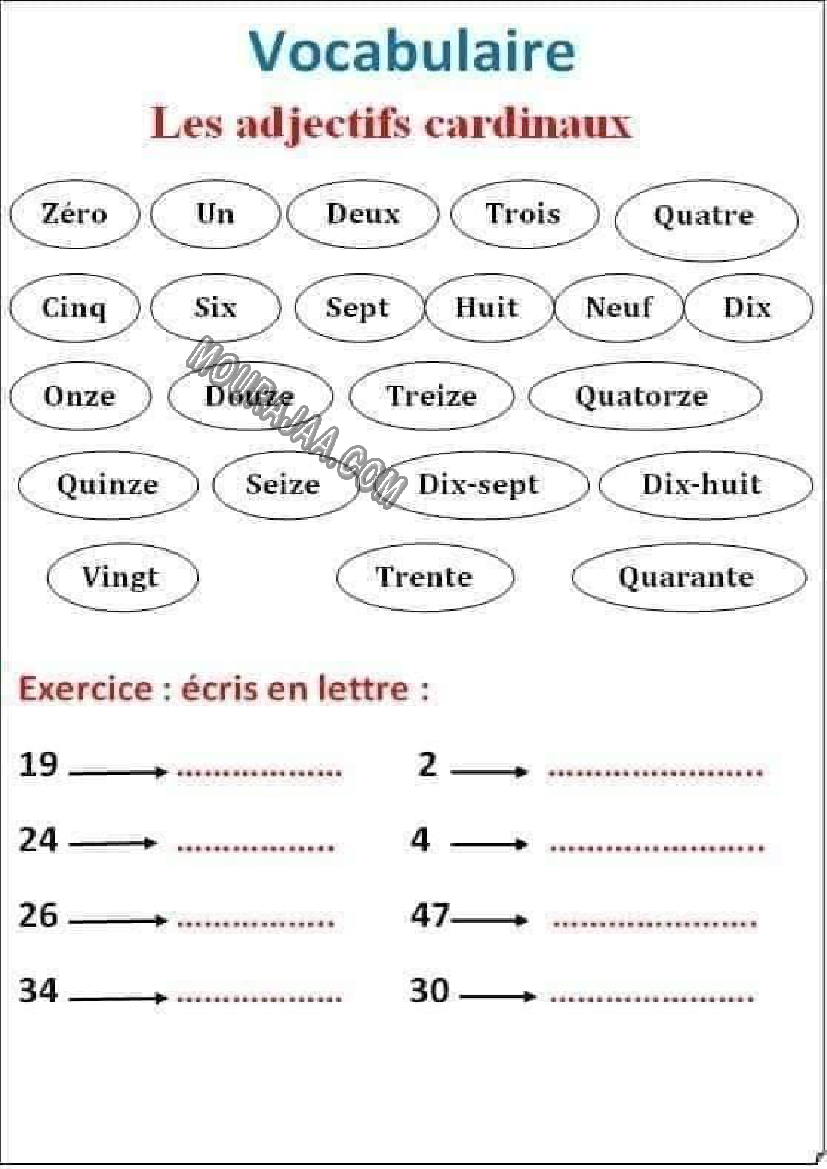 la leçon se deroule sur adjectif cardiaux pour aider l eleve de cinquieme annee primaire Pour revoir ses cours et examens en le téléchargeant sous forme de fichier ou en le visualisant sous forme d'images