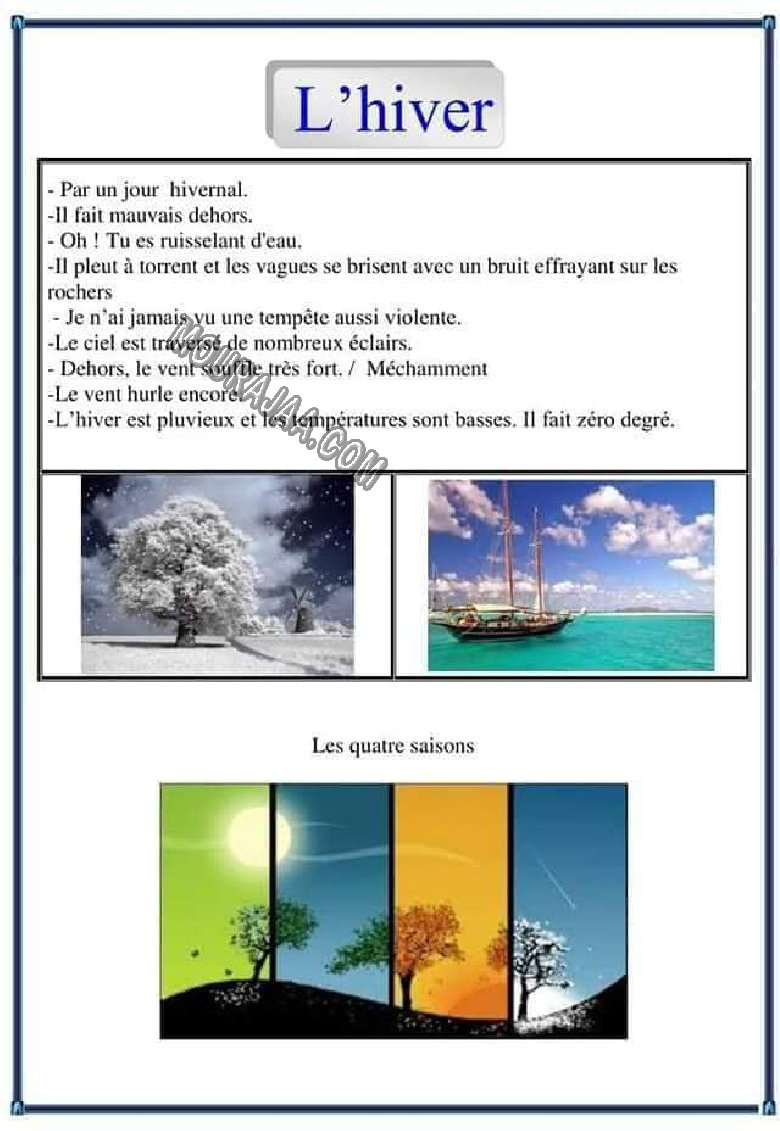 la leçon se deroule sur les saisons pour aider l eleve de sixieme annee primaire Pour revoir ses cours et examens en le téléchargeant sous forme de fichier ou en le visualisant sous forme d'images