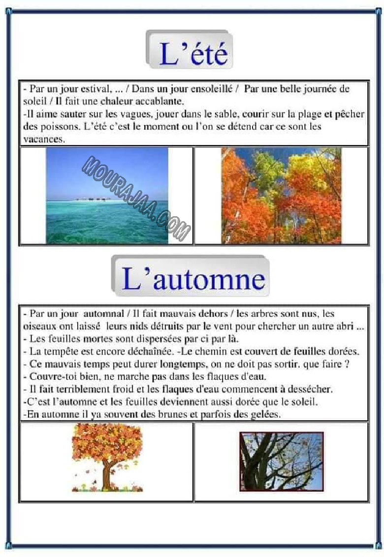 leçon les saisons au matiere exp_fr pour les eleves de cinquieme annee primaire .