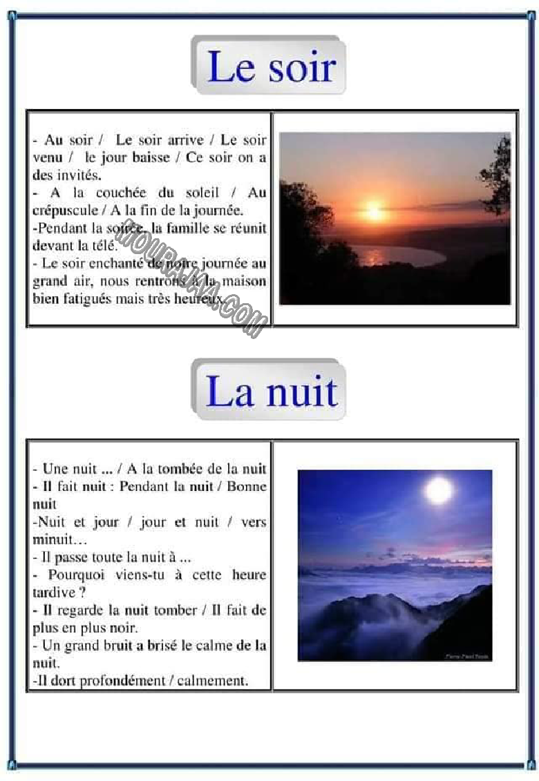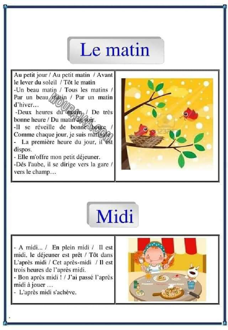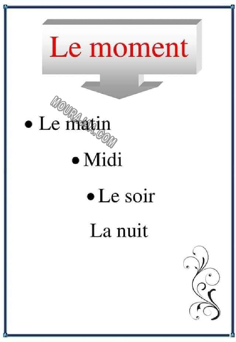 La leçon consiste à définir et résumer le moment et des informations à ce sujet avec des images pour simplifier la leçon le moment au matiere exp_fr pour cinquieme annee primaire .