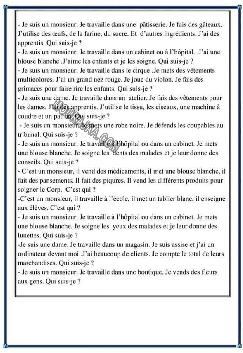 leçon divers au matiere exp_fr pour les eleves de cinquieme annee primaire .
