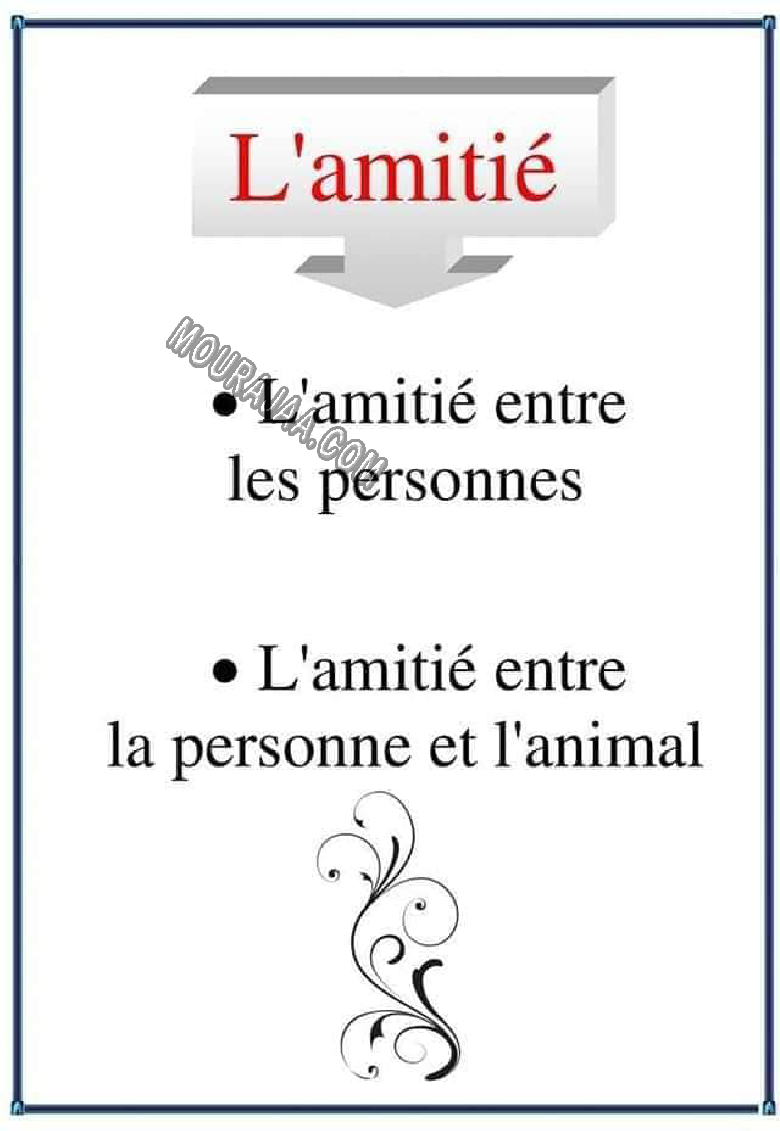La leçon consiste à définir et résumer l amitie et des informations à ce sujet avec des images pour simplifier la leçon l amitie au matiere exp_fr pour quatrieme annee primaire .