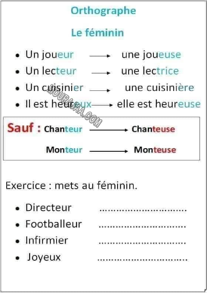 la leçon se deroule sur le feminin pour aider l eleve de cinquieme annee primaire Pour revoir ses cours et examens en le téléchargeant sous forme de fichier ou en le visualisant sous forme d'images