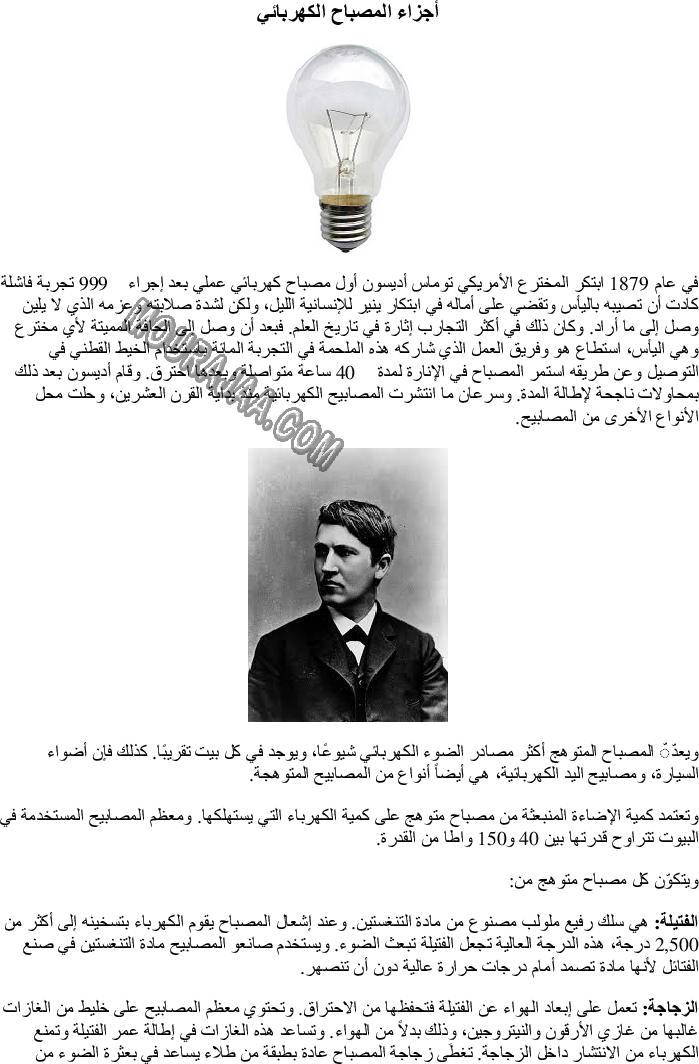 و يتمثل البحث تعريف أجزاء المصباح الكهربائي و معلومات حوله مع صور لتبسيط درس أجزاء المصباح الكهربائي في مادة االايقاظ العلمي لسنة خامسة ابتدائي