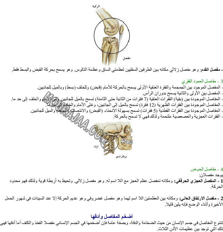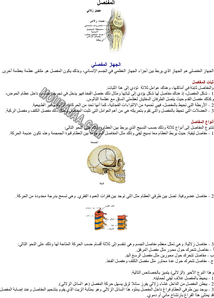 المفاصل هو عنوان لمحور درس مادة الايقاظ العلمي لـسنة خامسة ابتدائي