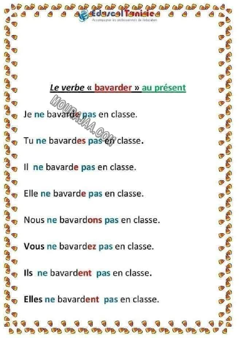 la leçon se deroule sur verbe bavarder au present pour aider l eleve de cinquieme annee primaire Pour revoir ses cours et examens en le téléchargeant sous forme de fichier ou en le visualisant sous forme d'images
