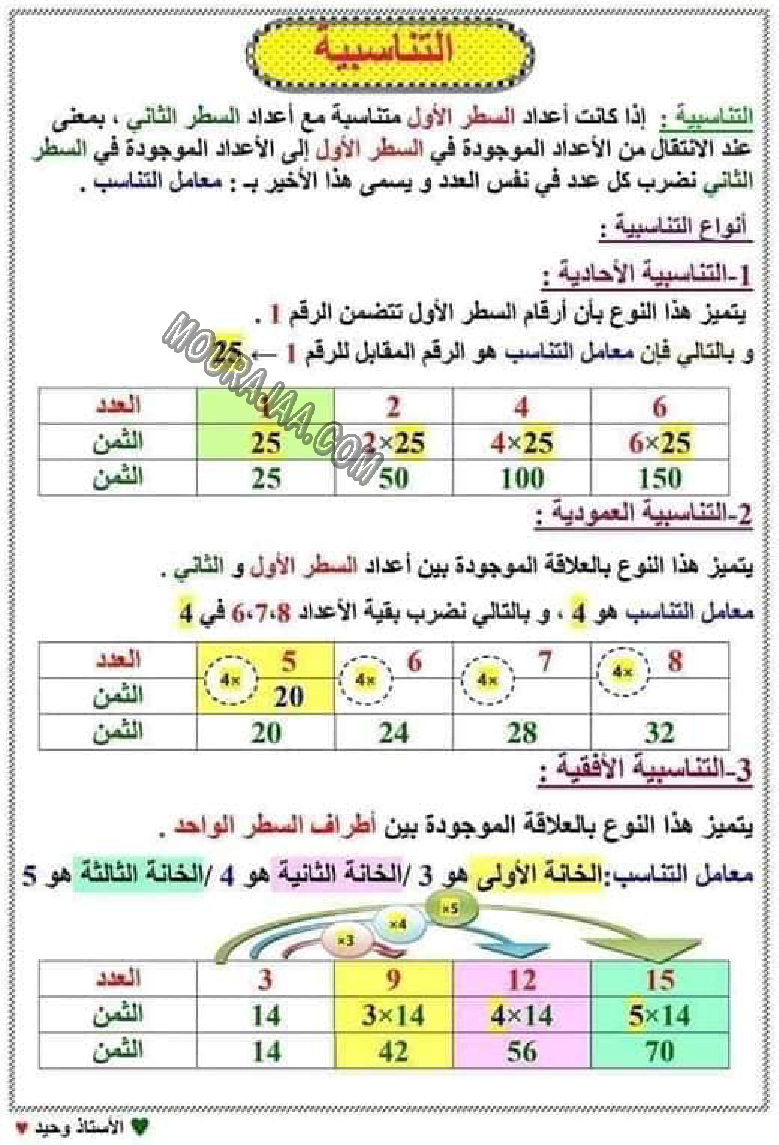 و يتمثل الدرس في تعريف و تلخيص التناسبية و معلومات حوله مع صور لتبسيط درس التناسبية في مادة رياضياتلسنة خامسة ابتدائي