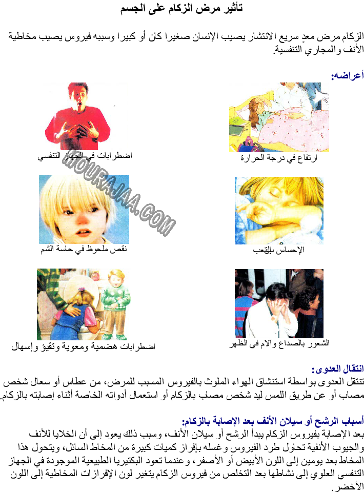 و يتمثل البحث تعريف تأثير مرض الزكام على الجسم و معلومات حوله مع صور لتبسيط درس تأثير مرض الزكام على الجسم في مادة االايقاظ العلمي لسنة رابعة ابتدائي