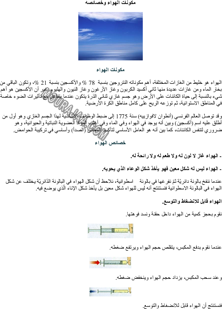 و يتمثل البحث تعريف مكونات الهواء وخصائصه و معلومات حوله مع صور لتبسيط درس مكونات الهواء وخصائصه في مادة االايقاظ العلمي لسنة رابعة ابتدائي