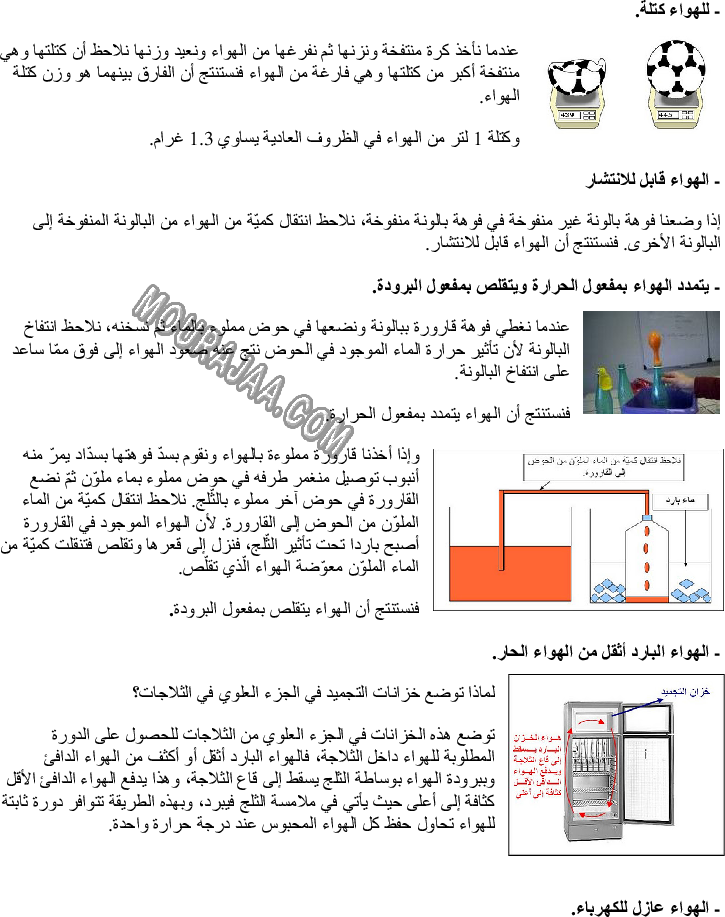 مكونات الهواء وخصائصه هو عنوان لمحور درس مادة الايقاظ العلمي لـسنة رابعة ابتدائي