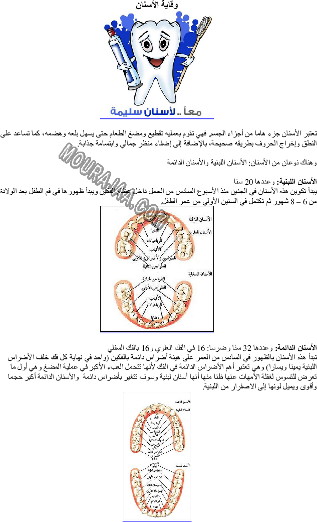 و يتمثل البحث تعريف وقاية الأسنان و معلومات حوله مع صور لتبسيط درس وقاية الأسنان في مادة االايقاظ العلمي لسنة رابعة ابتدائي