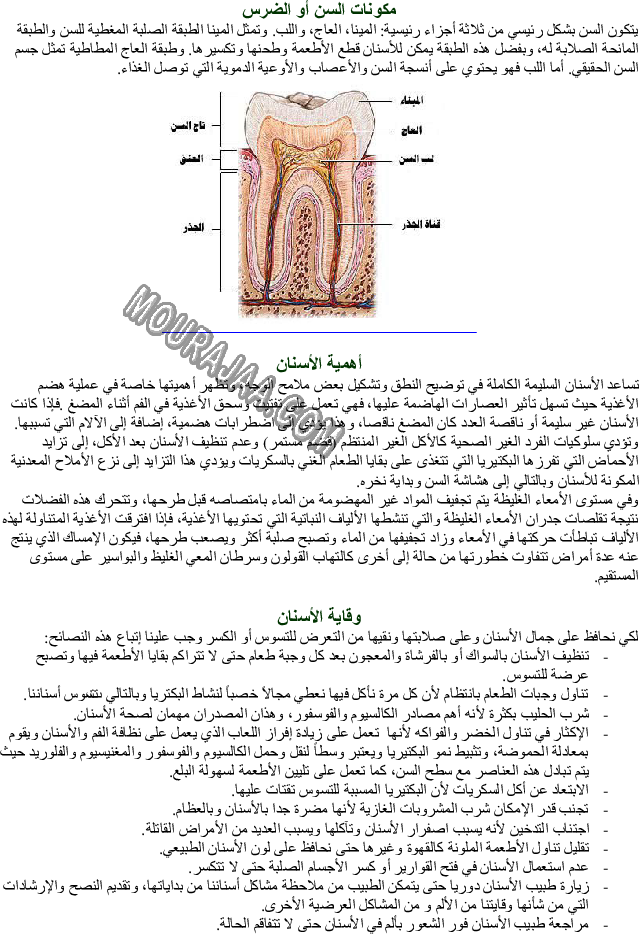 وقاية الأسنان هو عنوان لمحور درس مادة الايقاظ العلمي لـسنة رابعة ابتدائي