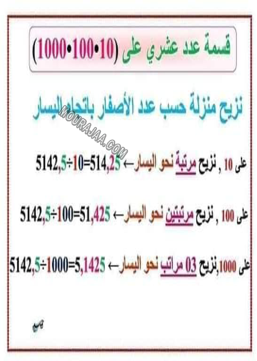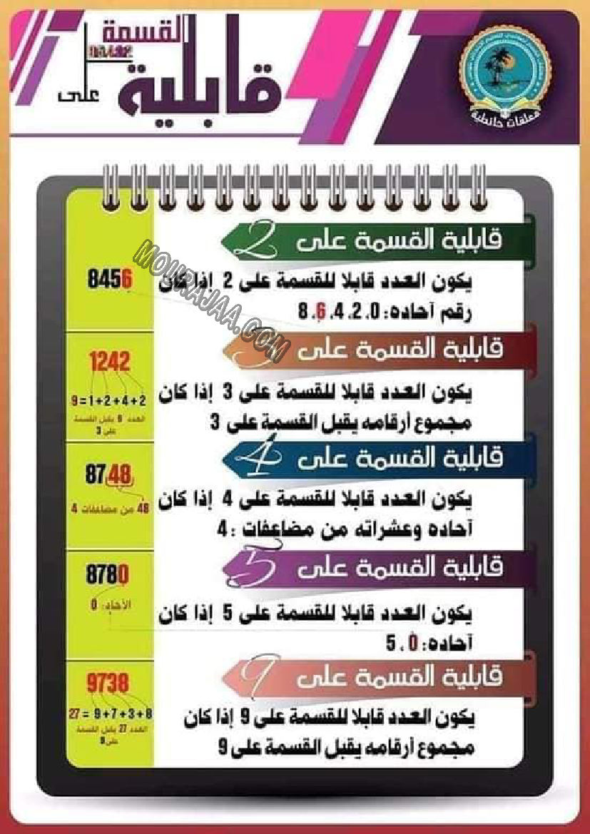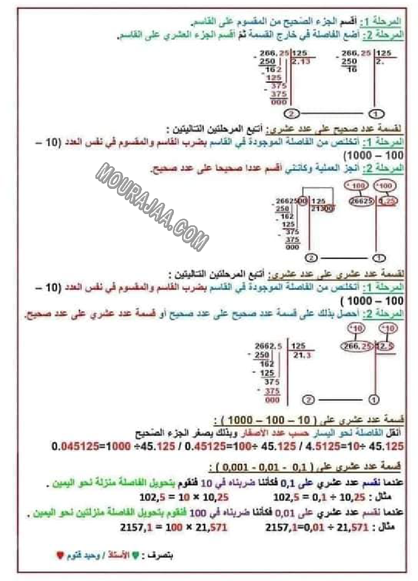 القسمة هو عنوان لمحور درس مادة رياضياتلسنة خامسة ابتدائي
