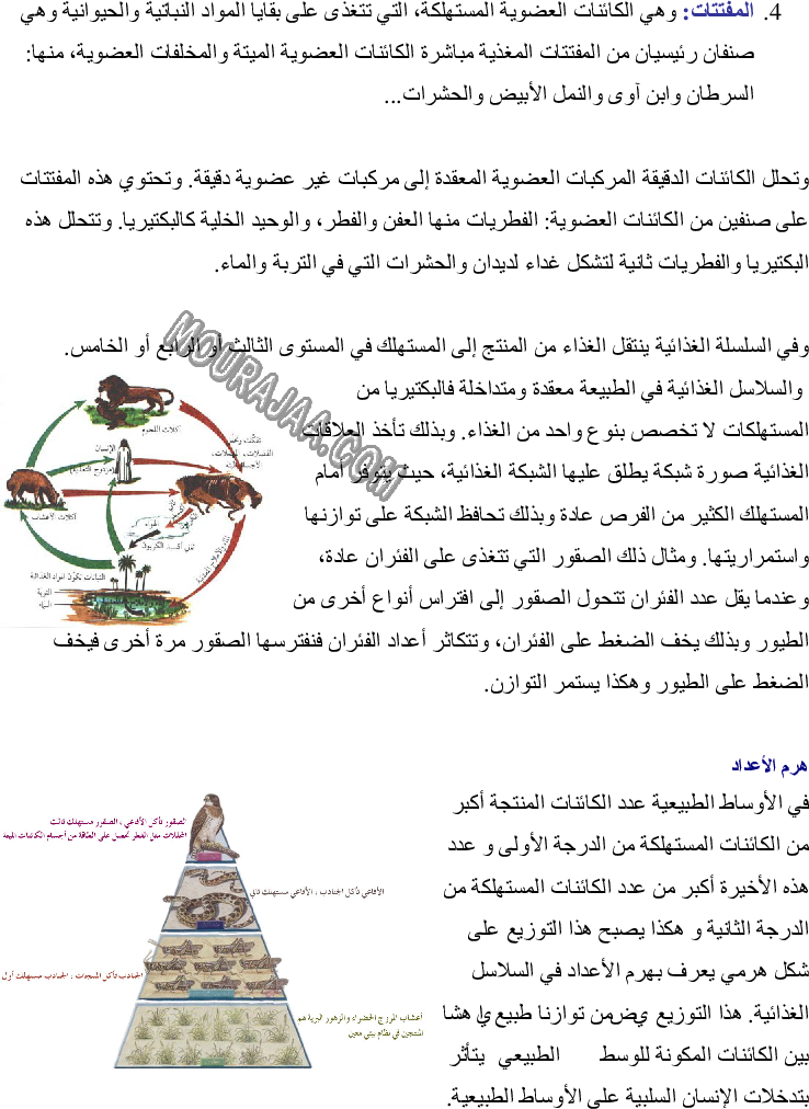 السلسلة الغذائية هو عنوان لمحور درس مادة الايقاظ العلمي لـسنة سادسة ابتدائي