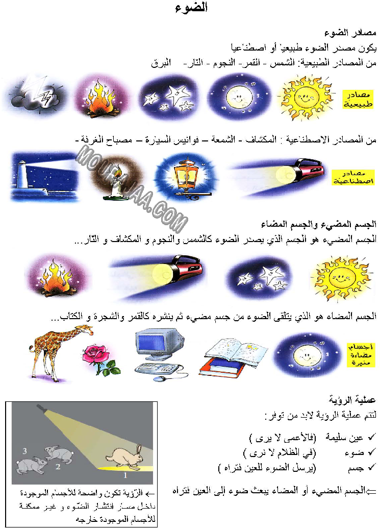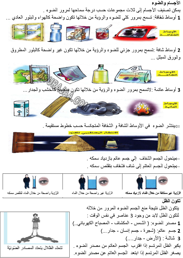 الضوء هو عنوان لمحور درس مادة ايقاظ علميلسنة خامسة ابتدائي