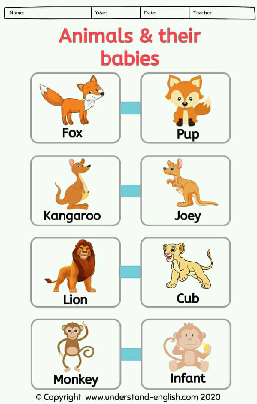 animals and their baby est l affiche de lecon animals and their baby Pour le simplifier sous forme d'images afin que l étudiant de sixieme annee primaire puisse organiser ses pensées et informations sur la leçonanimals and their baby