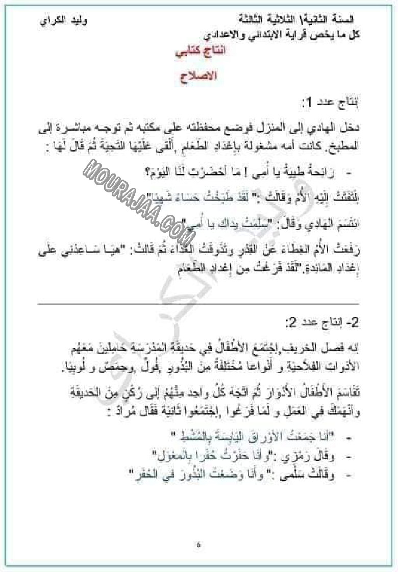 انتاج كتابي مع الاصلاح هو عنوان لمحور درس مادة انتاج كتابيلسنة ثانية ابتدائي