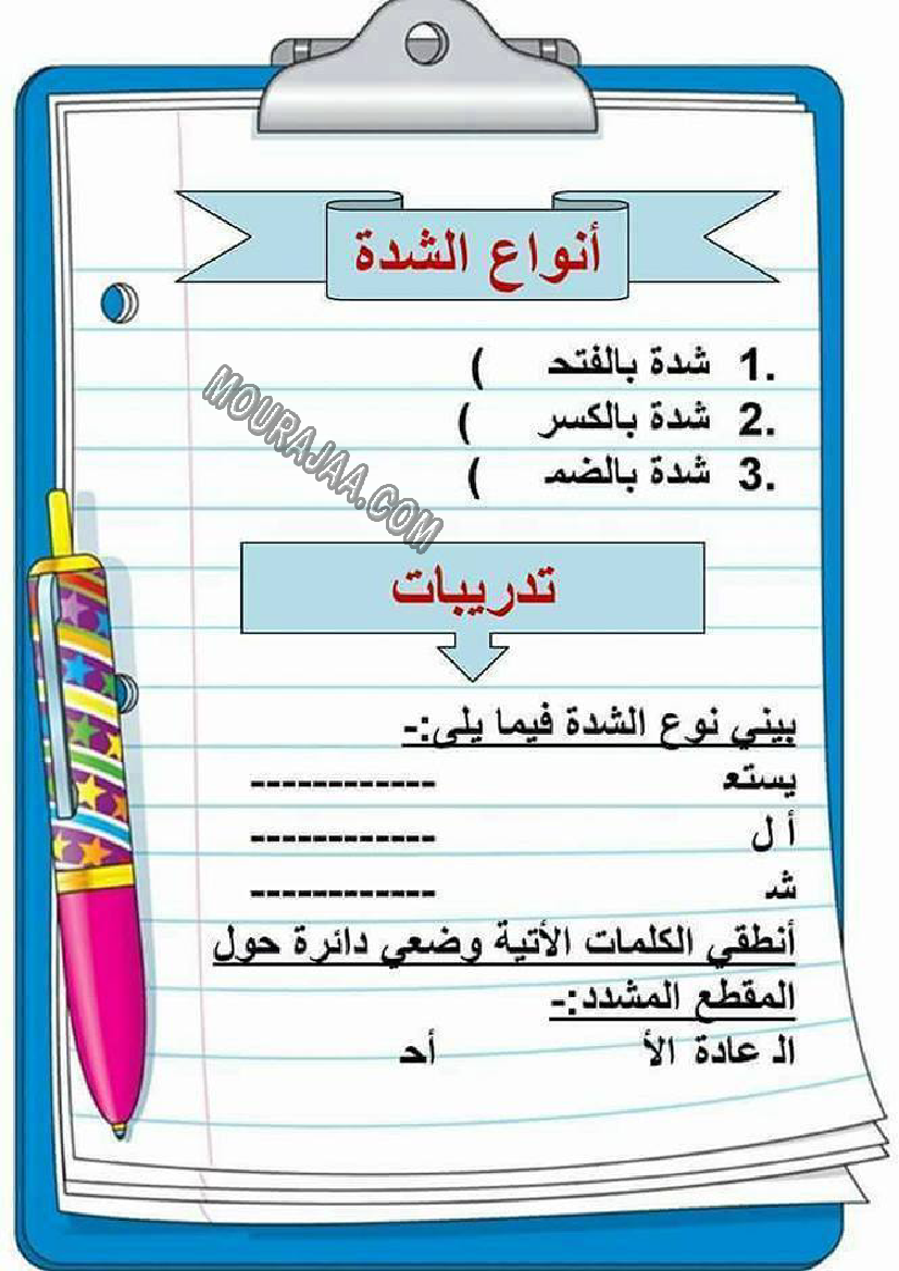 و يتمثل الدرس في تعريف و تلخيص الشدة و معلومات حوله مع صور لتبسيط درس الشدة في مادة لغةلسنة ثانية ابتدائي
