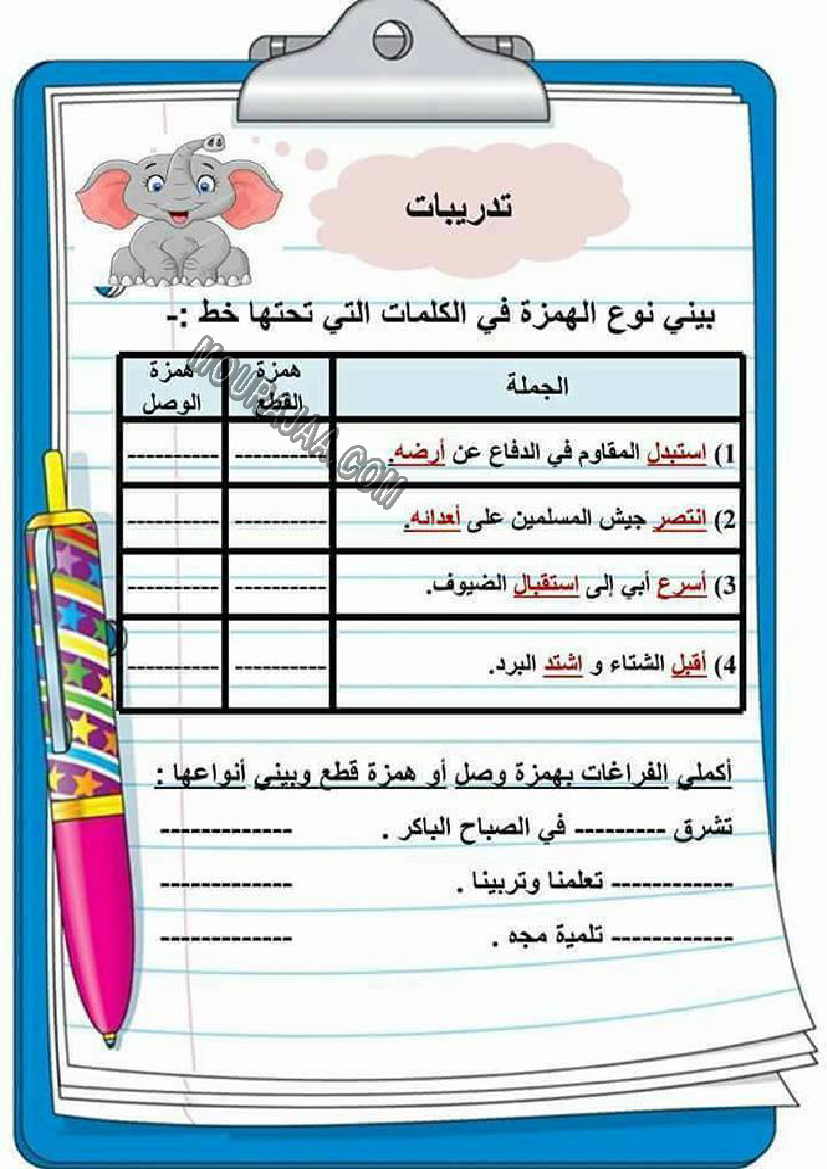 الهمزة هو عنوان لمحور درس مادة لغةلسنة ثالثة ابتدائي