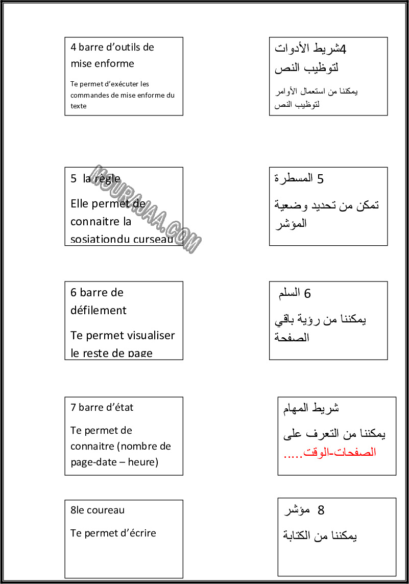 l affiche de interface word pour faciliter et simplifier la leçon interface word pour que l eleve de sixieme annee primaire avoir de la compréhension profonde et la réalisation des sujets de la leçon