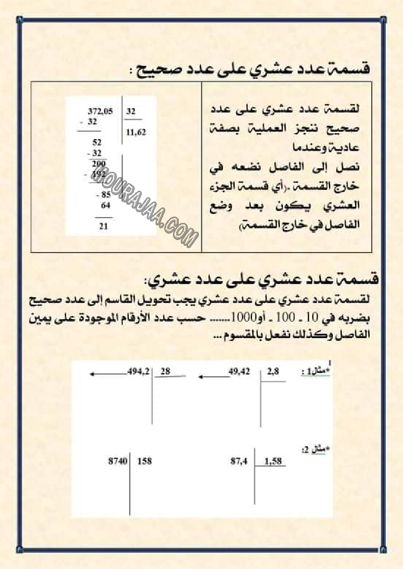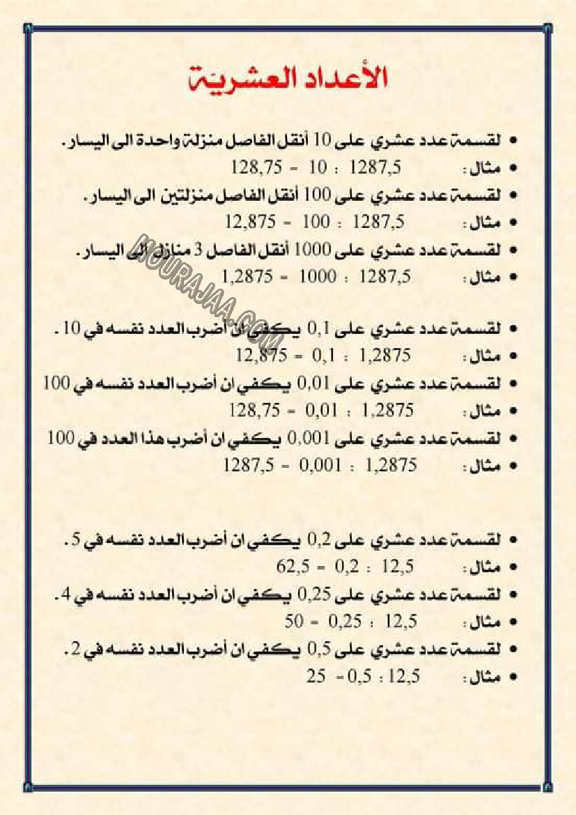 الاعداد العشرية1 هو عنوان لمحور درس مادة رياضياتلسنة سادسة ابتدائي