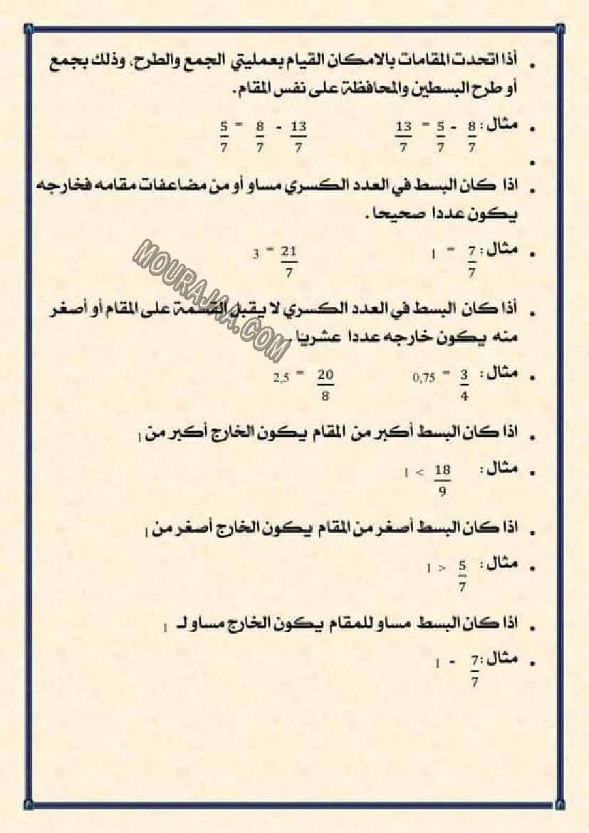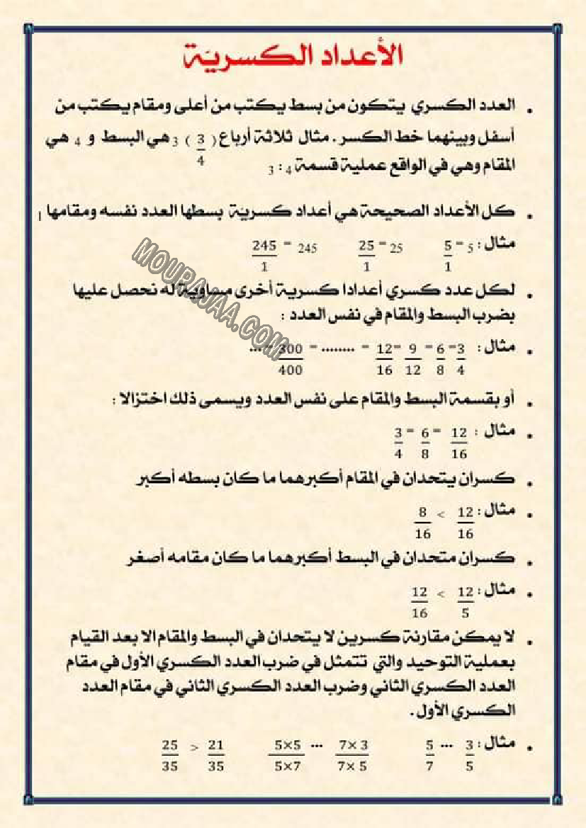 الاعداد الكسرية1 هو عنوان لمحور درس مادة رياضياتلسنة سادسة ابتدائي