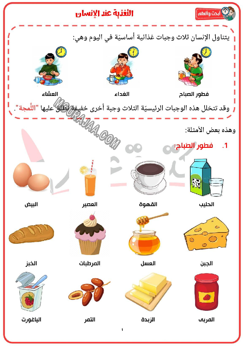 يتحدث البحث على التغذية عند الانسان 2022 لمساعدة تلميذ سنة أولى ابتدائي في مراجعة دروسه و امتحاناته و ذلك عبر تحميله في صيغة ملف او مشاهدته في صيغة صور