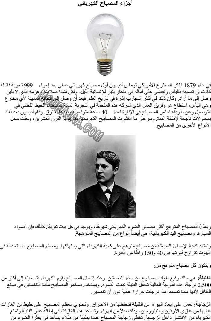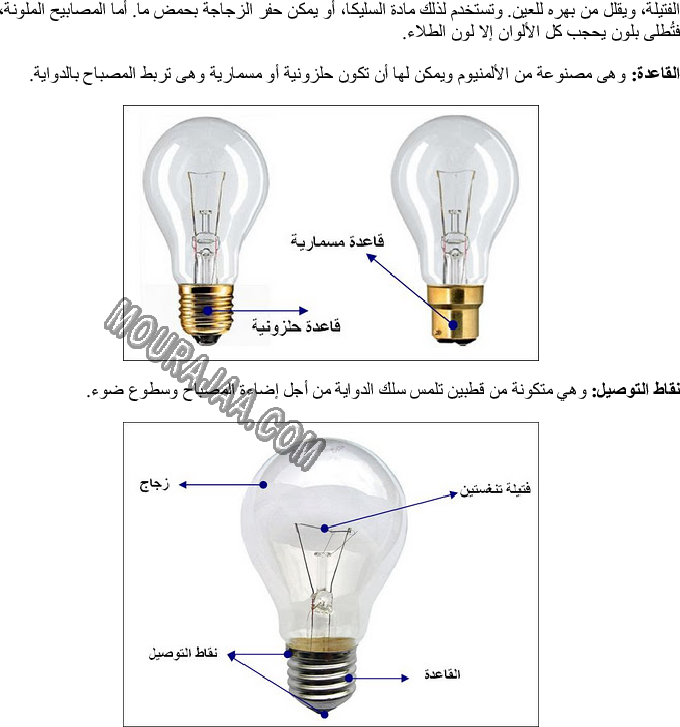 و يتمثل البحث تعريف أجزاء المصباح الكهربائي و معلومات حوله مع صور لتبسيط درس أجزاء المصباح الكهربائي في مادة االايقاظ العلمي لسنة خامسة ابتدائي