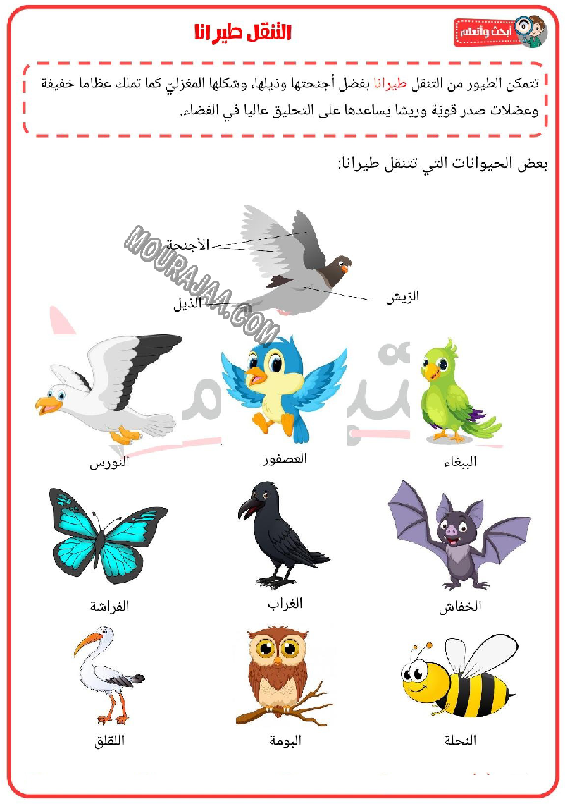 بحث حول التنقل طيرانا 2022 في مادة الايقاظ العلمي لتلاميذ سنة ثالثة ابتدائي